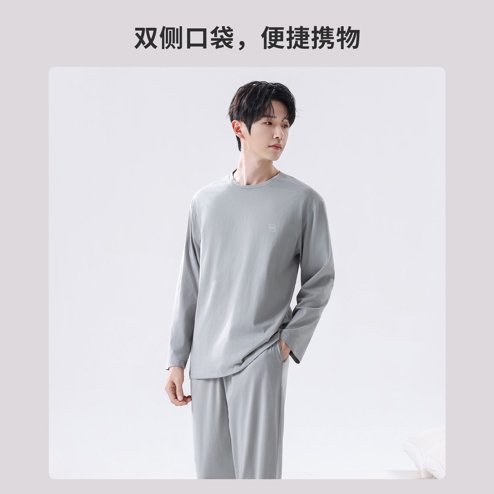 100%全棉男春秋套头家居服套装 纯棉睡衣男士 宽松长袖 2025新款 秋季
