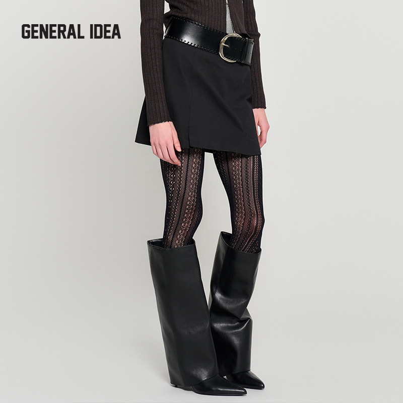 娅丽达松紧腰羊毛醋酸半身裙女秋冬2025新款 黑色裙子开叉直筒长裙