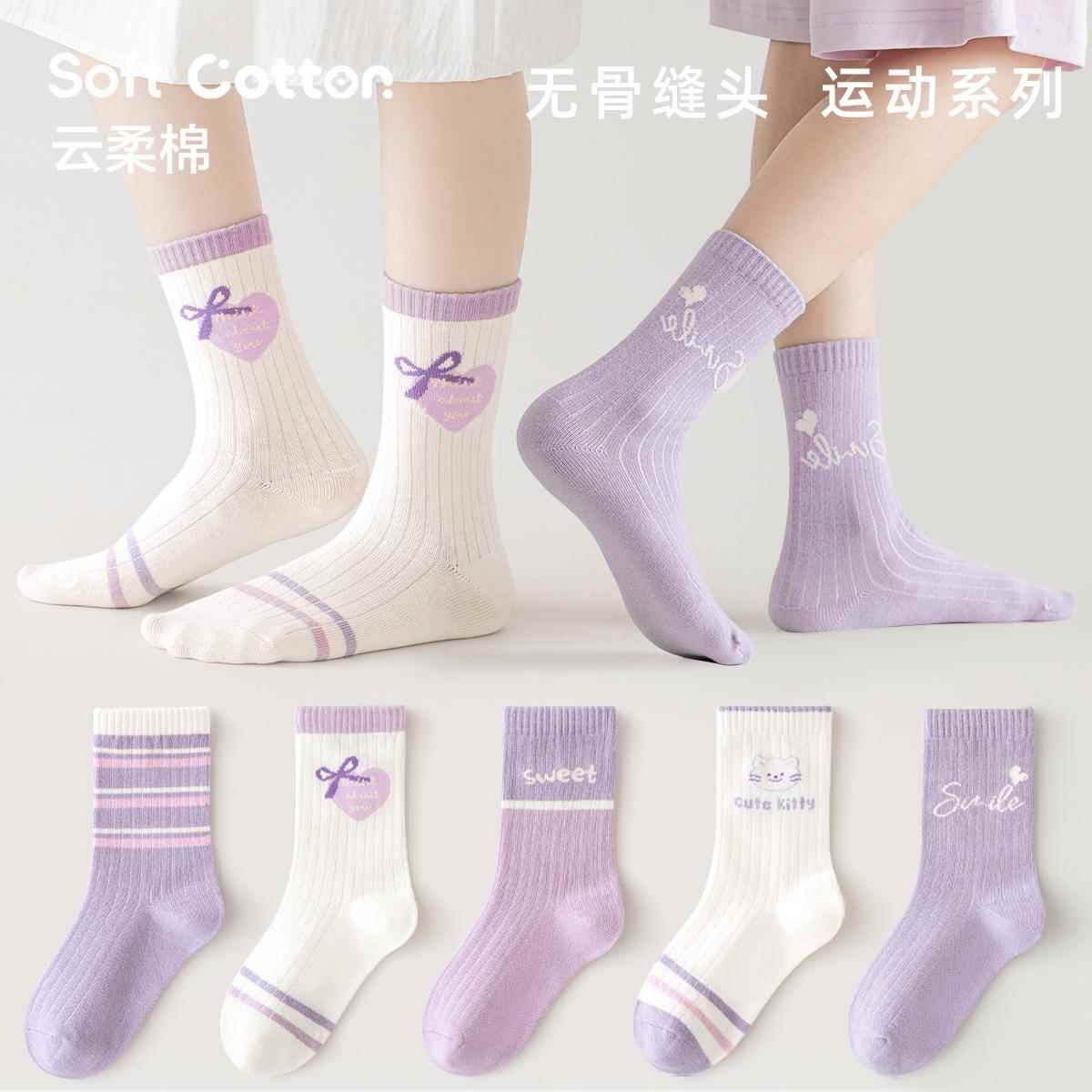 女童袜子秋季 精梳棉中筒袜儿童袜无骨字母运动袜A类透气潮袜 新款