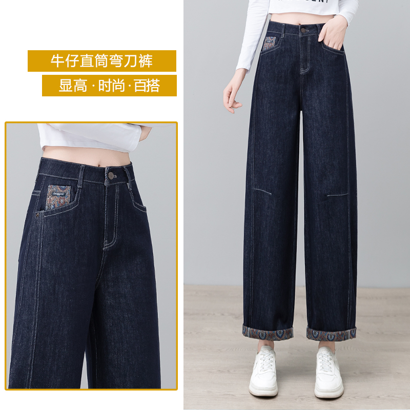 高腰宽松休闲百搭直筒拖地裤 黑色加绒阔腿牛仔裤 女2025年秋冬新款