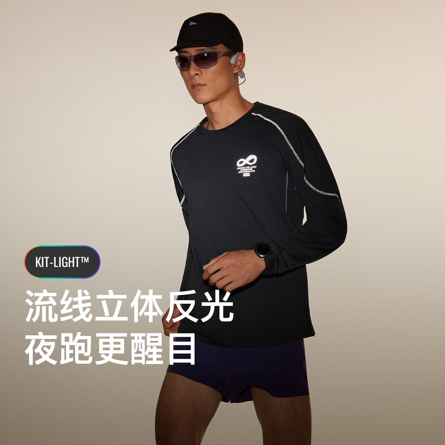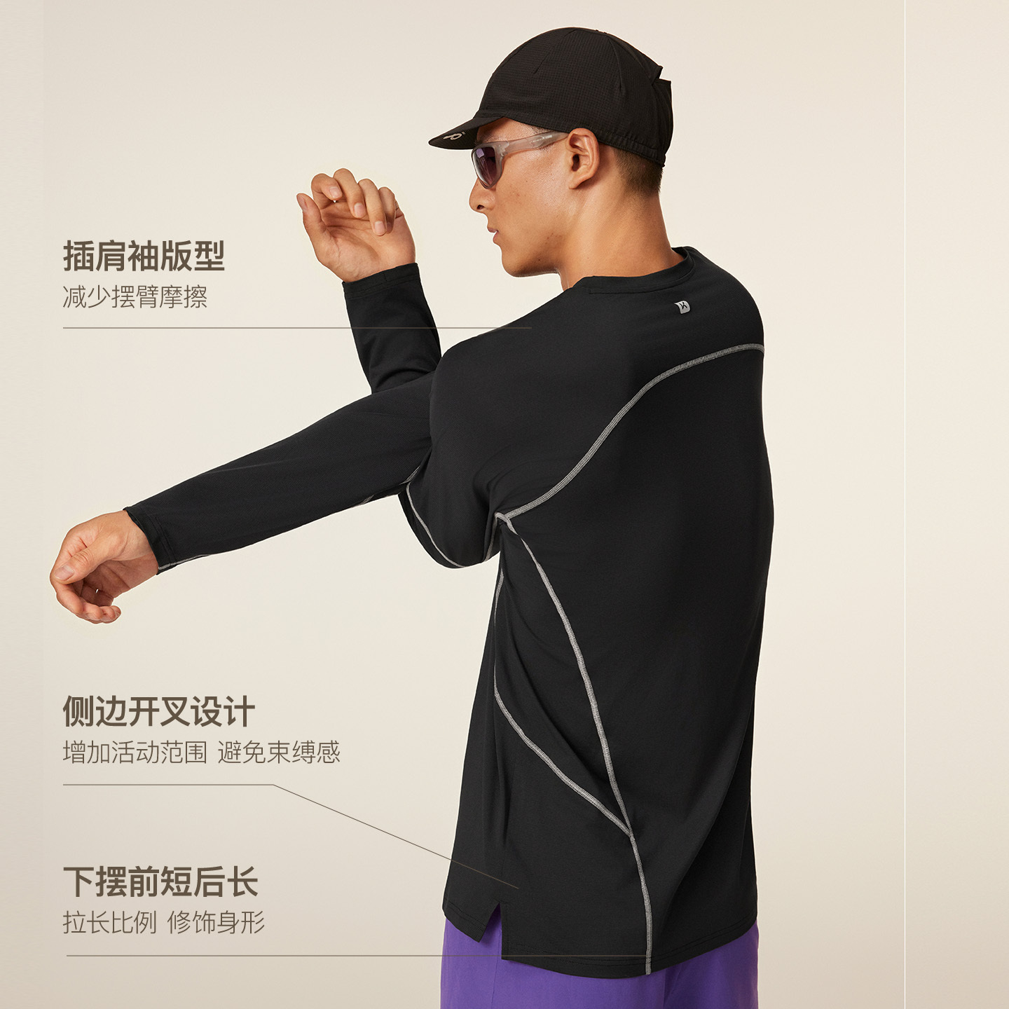 轻功马拉松运动跑步长袖 备 t恤呼吸方格交叠领训练速干衣男上衣装
