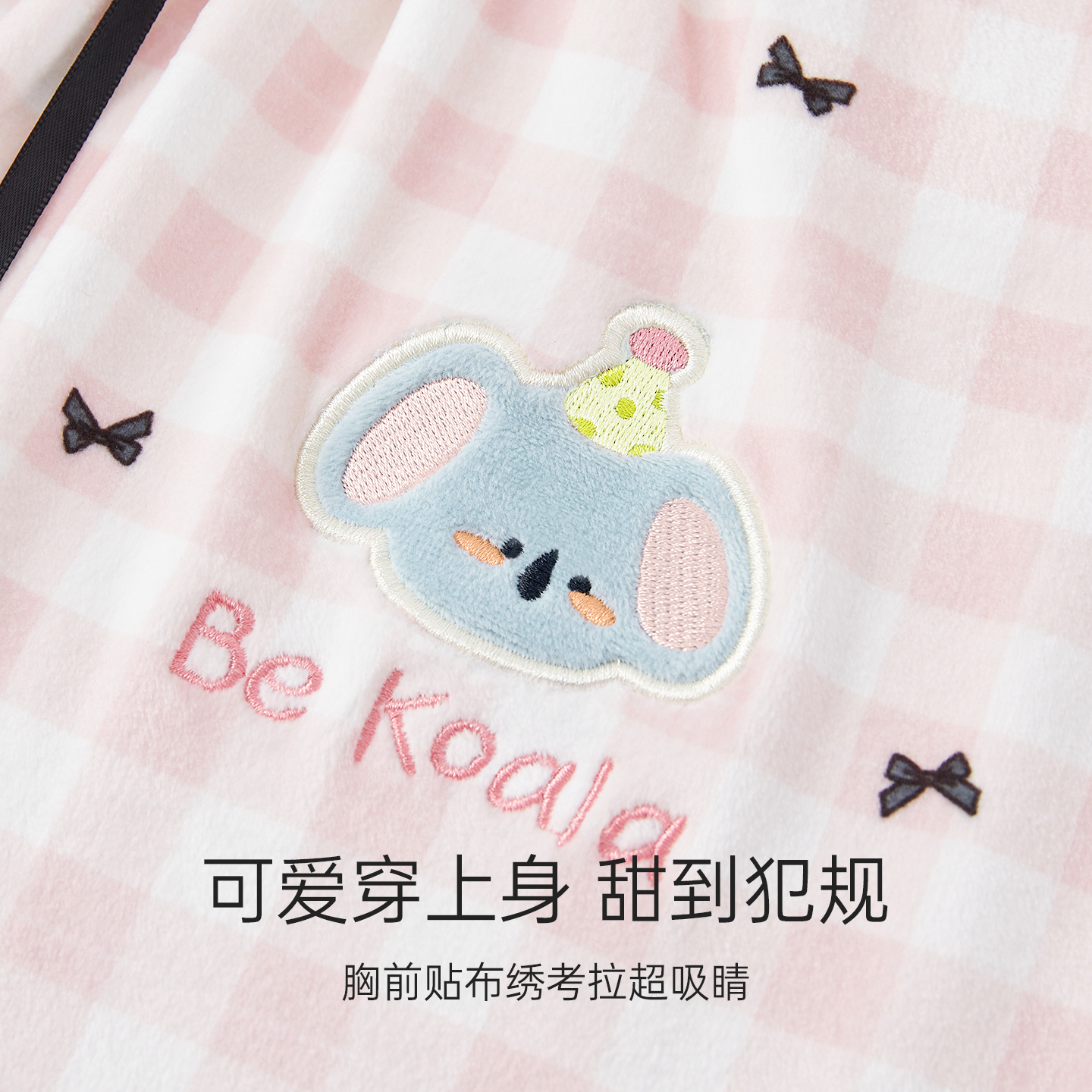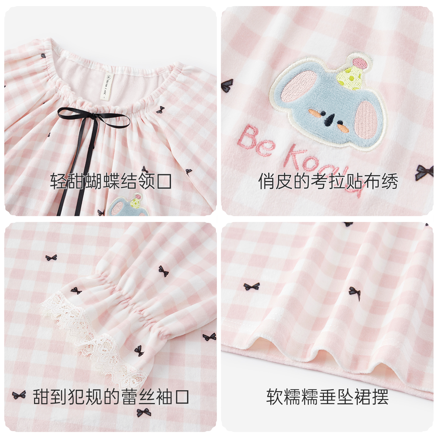 BE海岛绒睡裙女款 蕾丝睡衣裙子牛奶绒法兰绒可外穿珊瑚绒薄绒 冬季