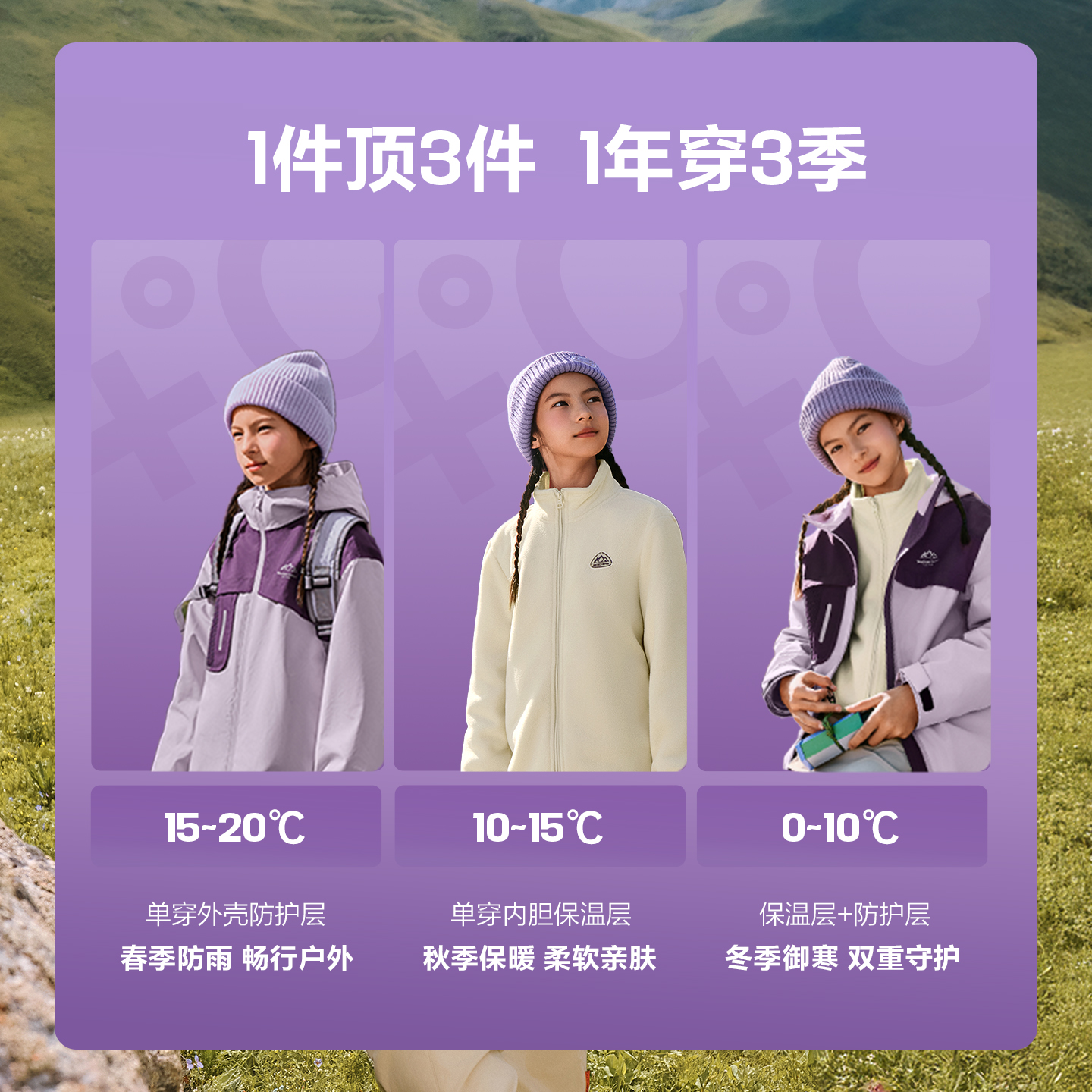 Skechers斯凯奇小魔方2.0儿童户外冲锋衣三合一防水防风秋冬外套