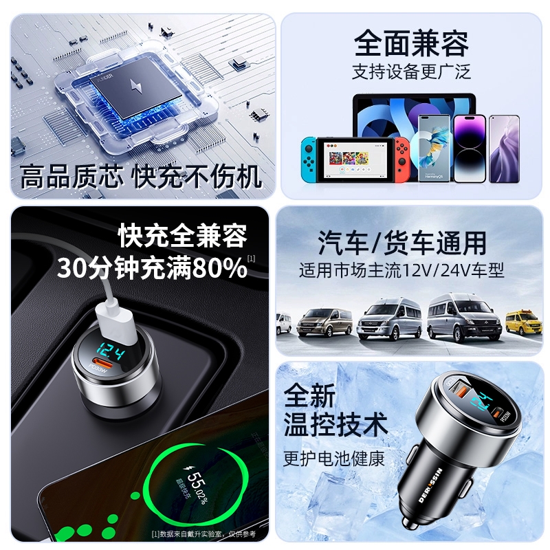 车载充电器手机超级快充点烟器一拖二转换插头快速车充插座汽车用