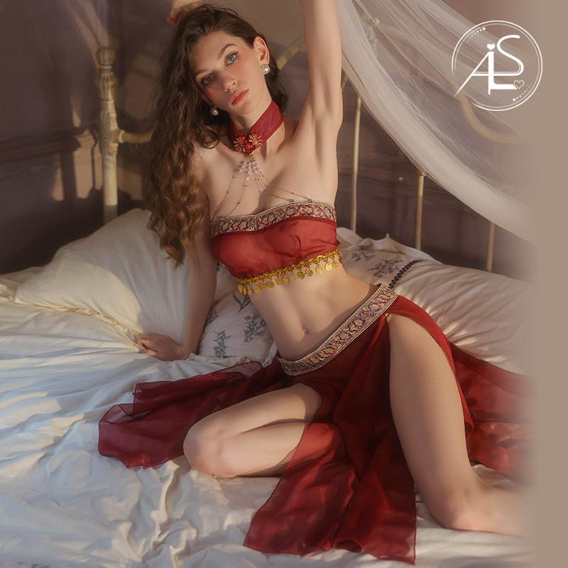 上海故事红色提花冰丝吊带睡裙睡袍一男一女结婚新婚情侣睡衣套装