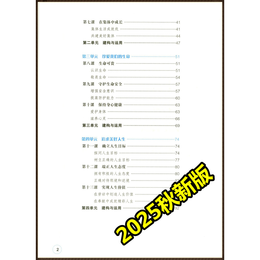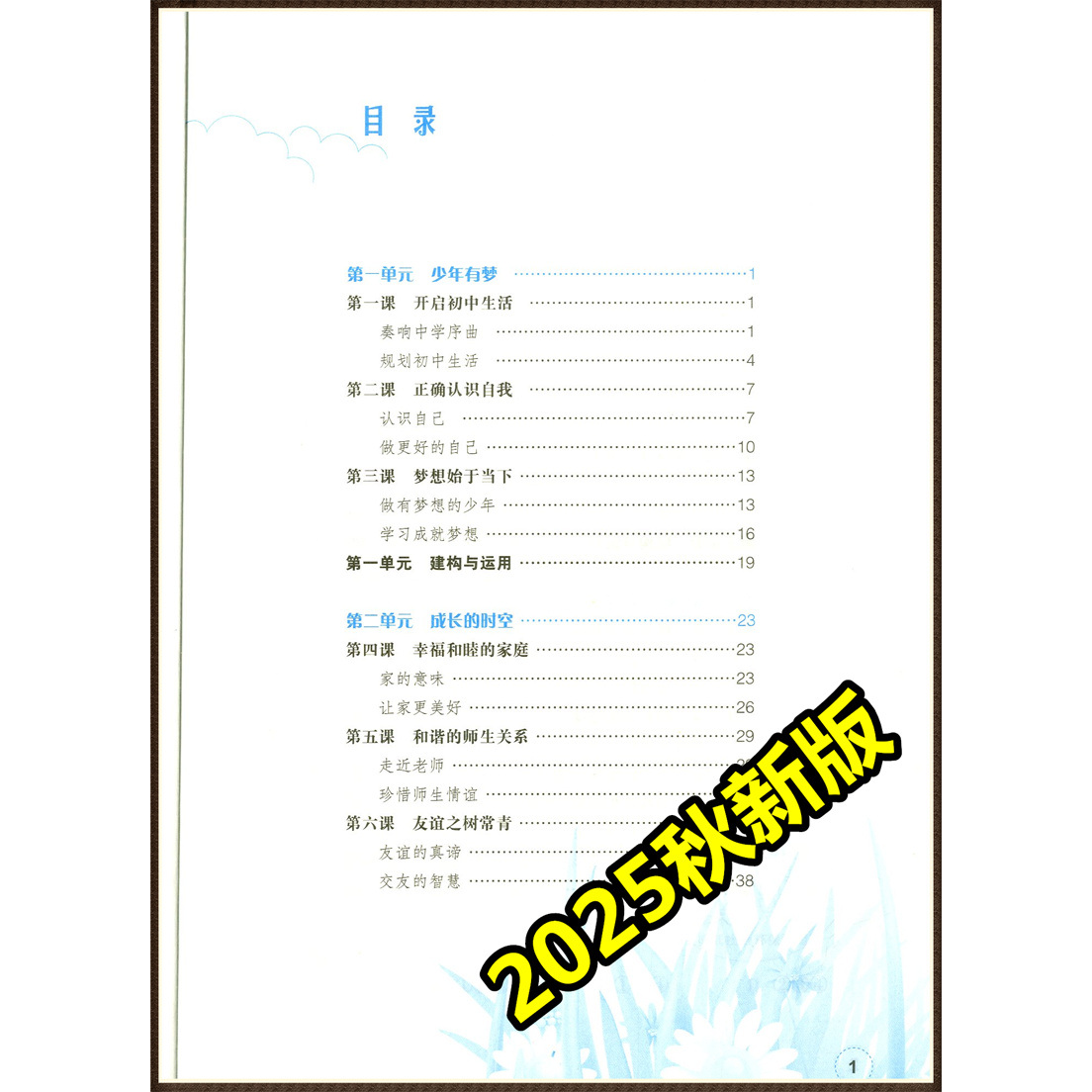 学校同款 7上道法课堂作业本R浙江教育出版 2025秋新版 人教版 社初一上同步练习义务教育教材 初中道德与法治作业本七年级上册