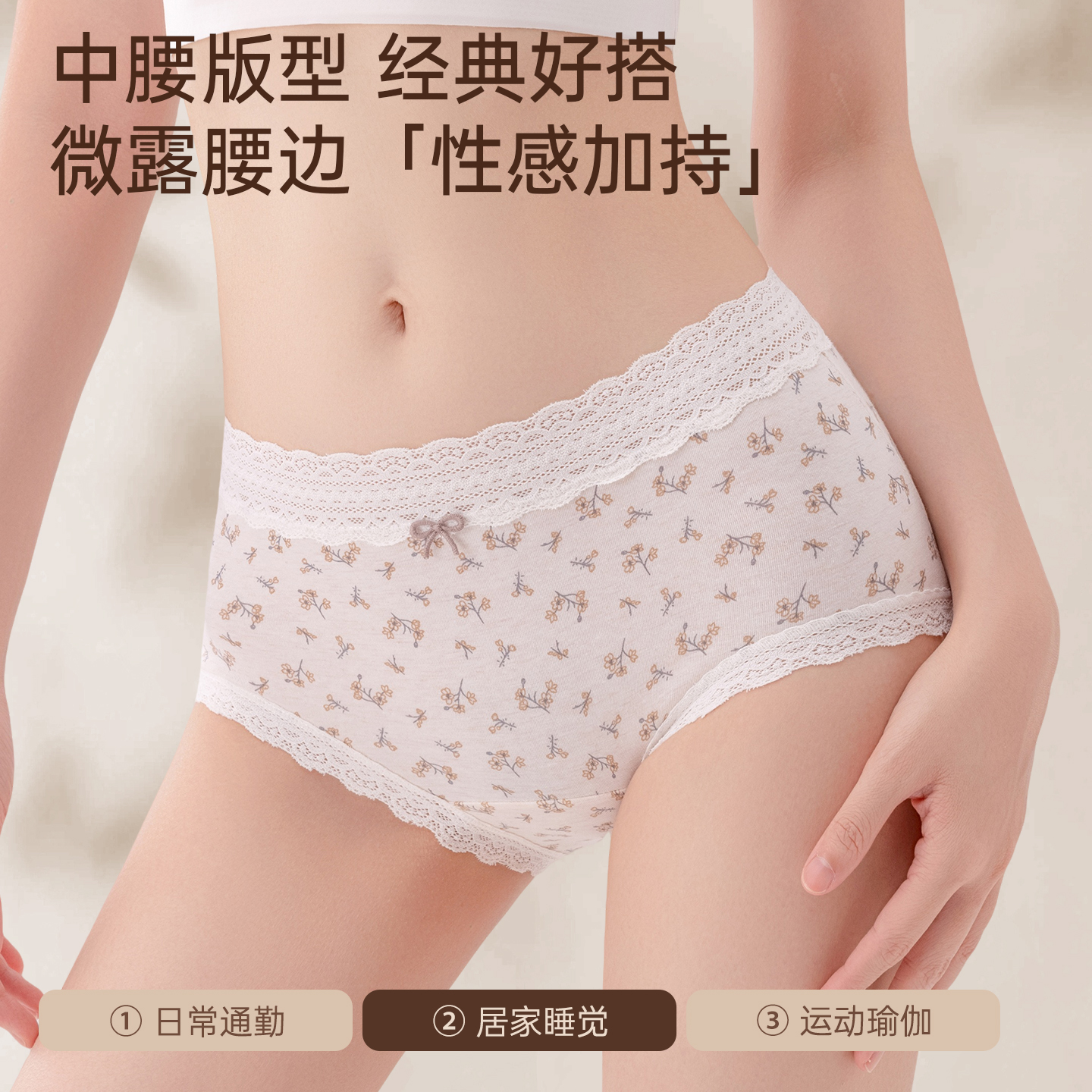 女士纯棉中腰女生内裤 不夹臀抗菌内裤 三角裤 新款 短裤 全棉时代内裤