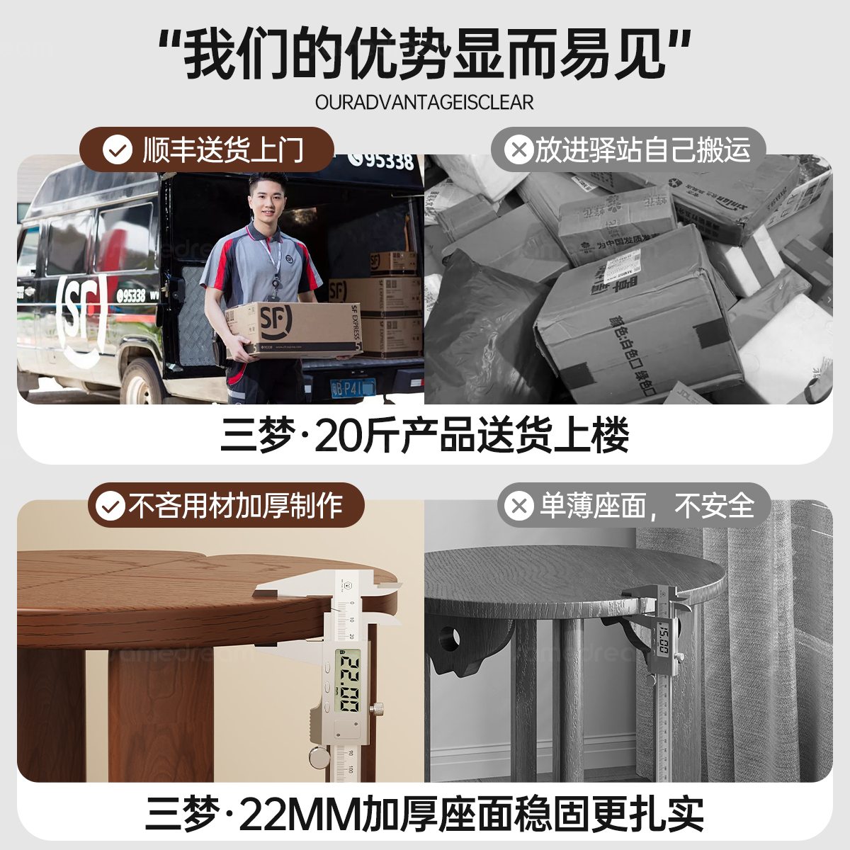 三梦实木叠叠乐凳子家用中古风可叠放组合凳收纳折叠凳堆叠组合凳