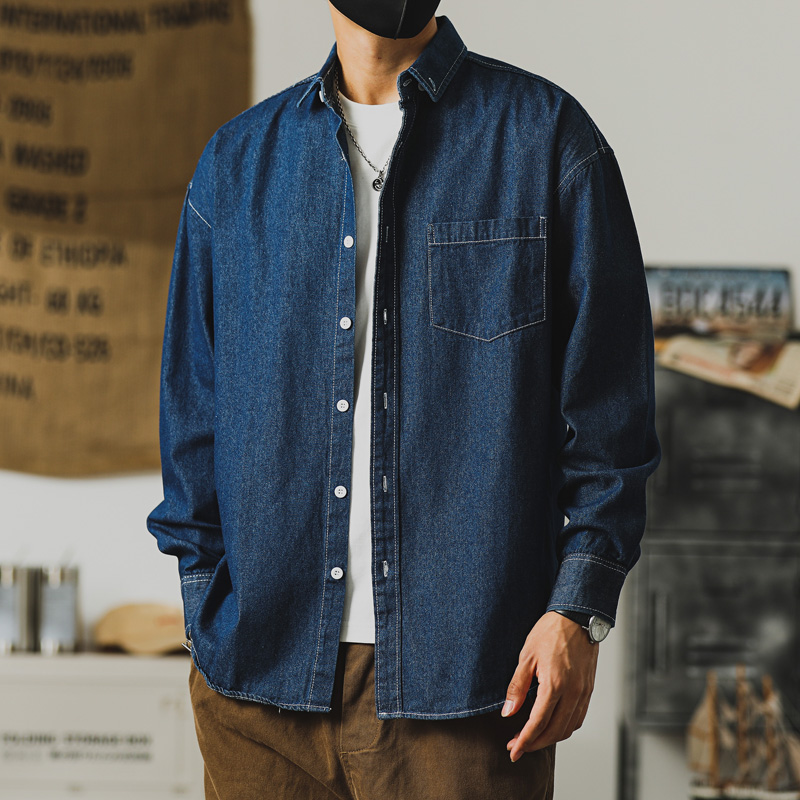 牛仔衬衣男18045803 男洗水单口袋宽松长袖 设计师款 佐丹奴牛仔衬衫