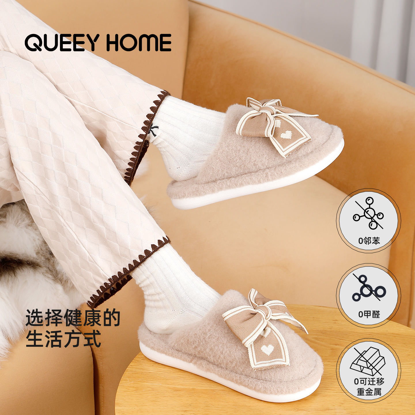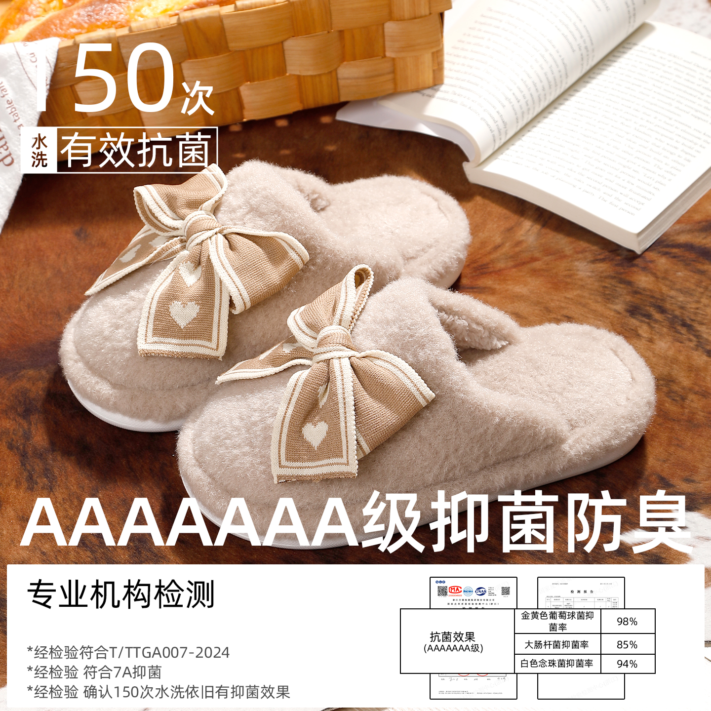 室内家居防滑防臭保暖包头拖鞋 抑菌蝴蝶结棉拖鞋 2025新款 冬季 女款