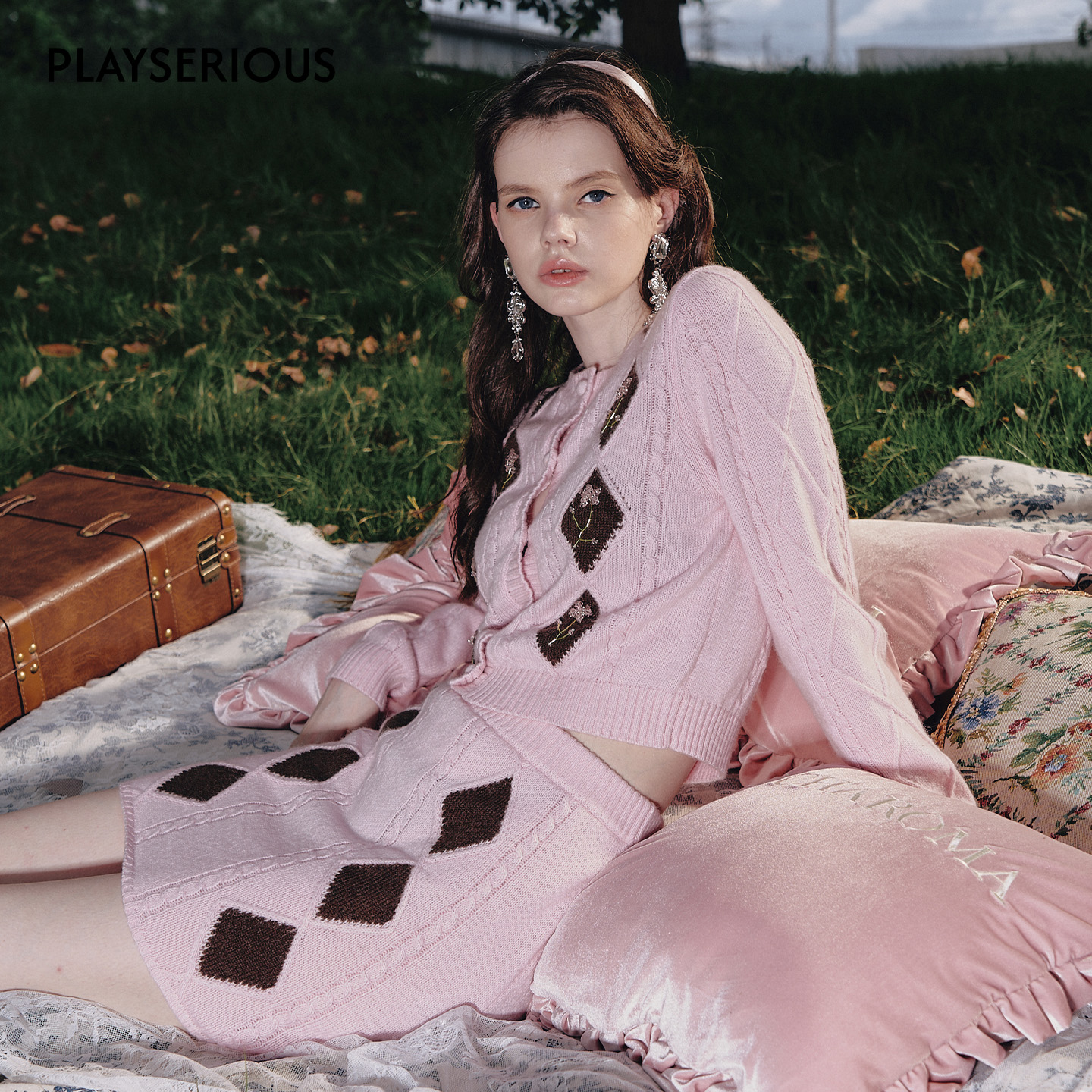 2025秋季 早秋针织套装 新款 女巨好看 菱形格针织套装 ROCHAROMMA