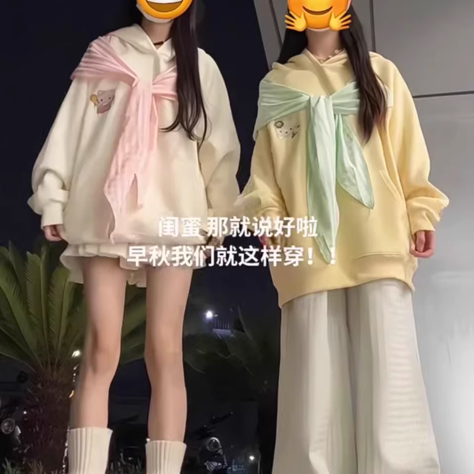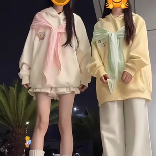 设计感学院风宽松外套 纯棉新款 秋冬季 蝴蝶结绑带连帽卫衣女春秋款