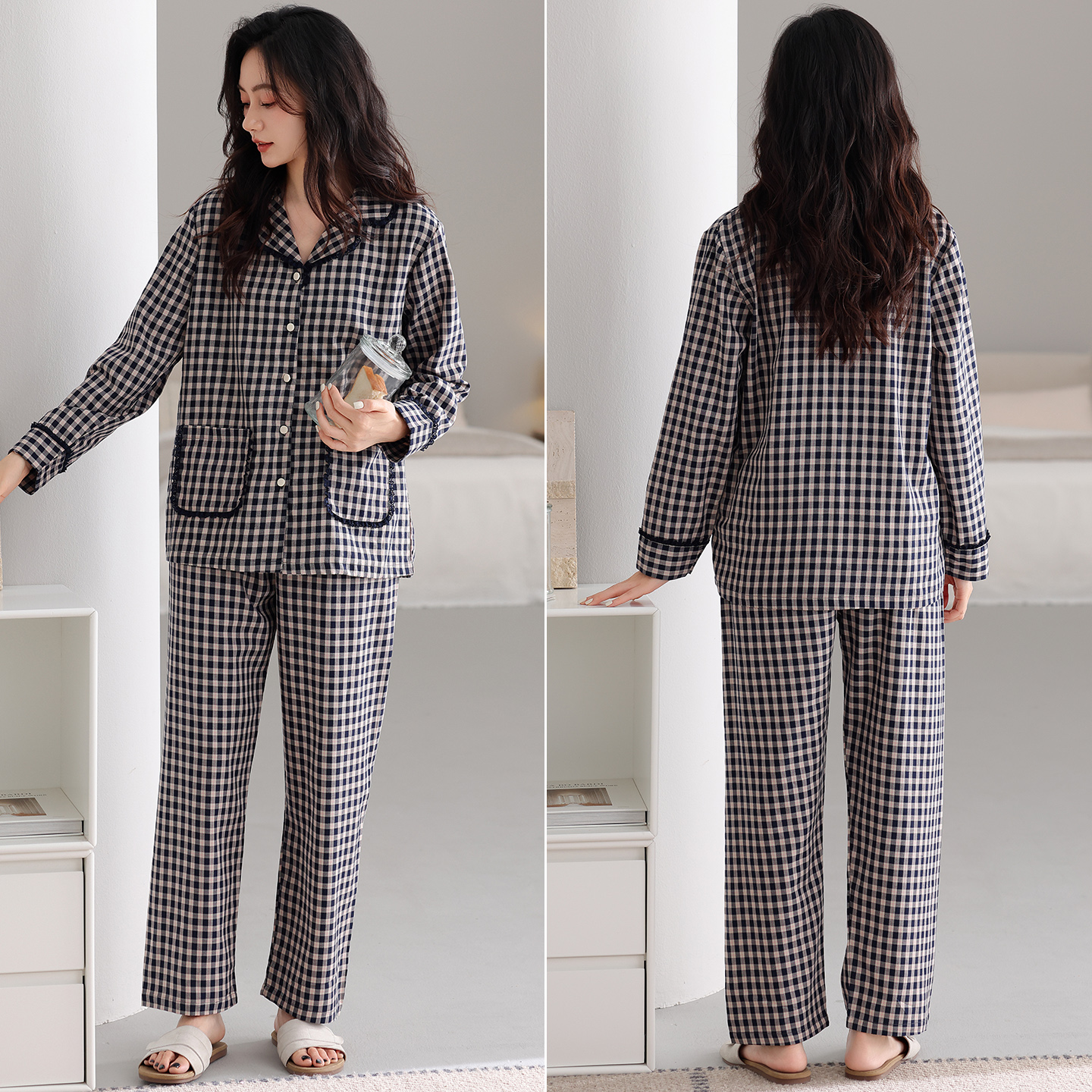 睡衣女春秋季 可外穿大码 柔软棉长袖 套装 家居服 格子长裤 迪士尼新款
