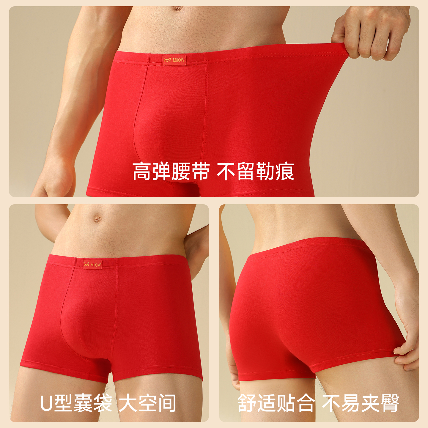 衩男款 猫人本命年男士 纯棉大红色结婚属马年四角裤 男生平角裤 内裤