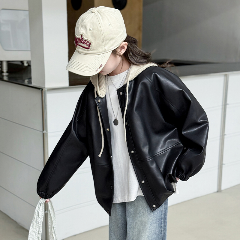 女童皮衣2025新款 儿童洋气时髦中大童韩系可拆卸连帽皮衣外套 秋装