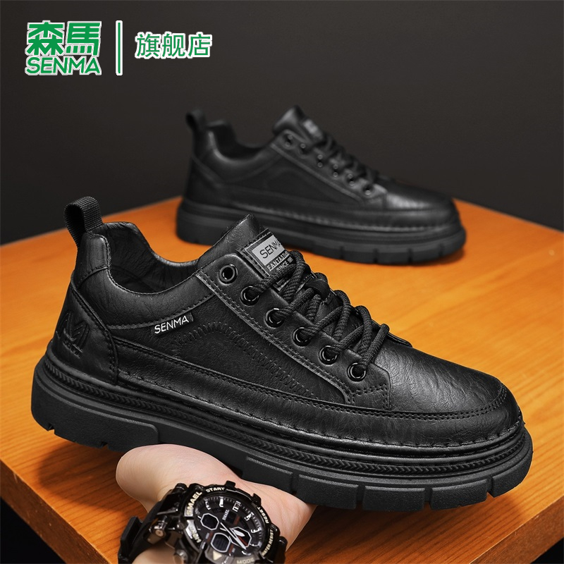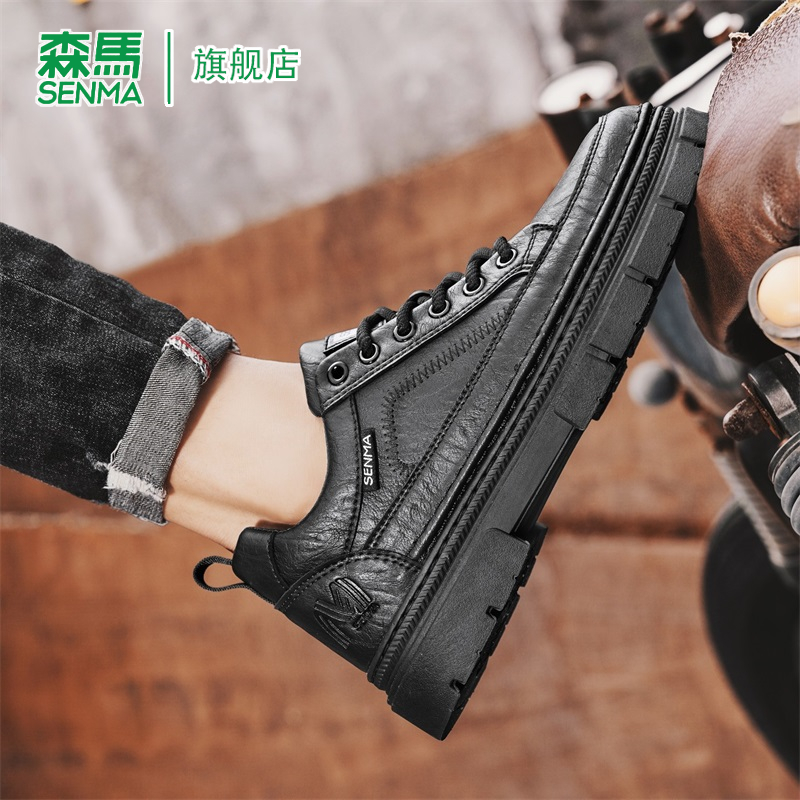 厚底增高黑色耐脏低帮板鞋 森马男鞋 英伦商务休闲皮鞋 秋季 2025新款