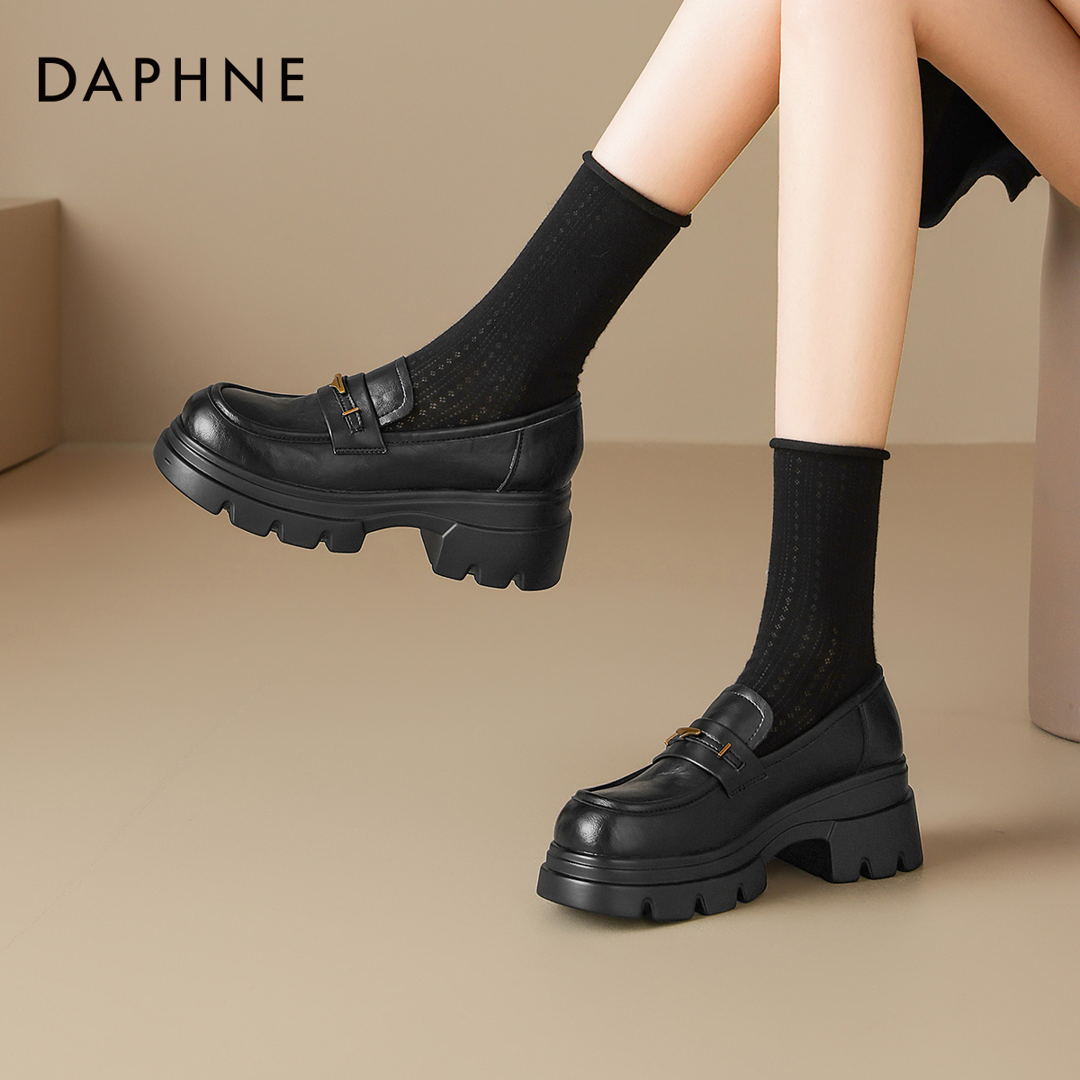 高跟鞋 达芙妮黑色乐福鞋 增高单鞋 英伦风厚底小皮鞋 女秋冬2025新款