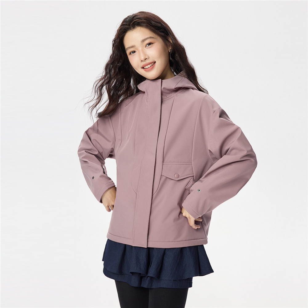 佐丹奴防风夹克女秋冬新款 山系登山服加绒连帽软壳外套女13375655