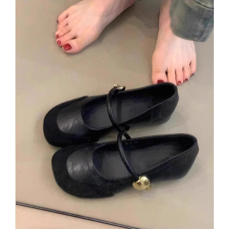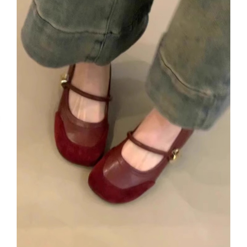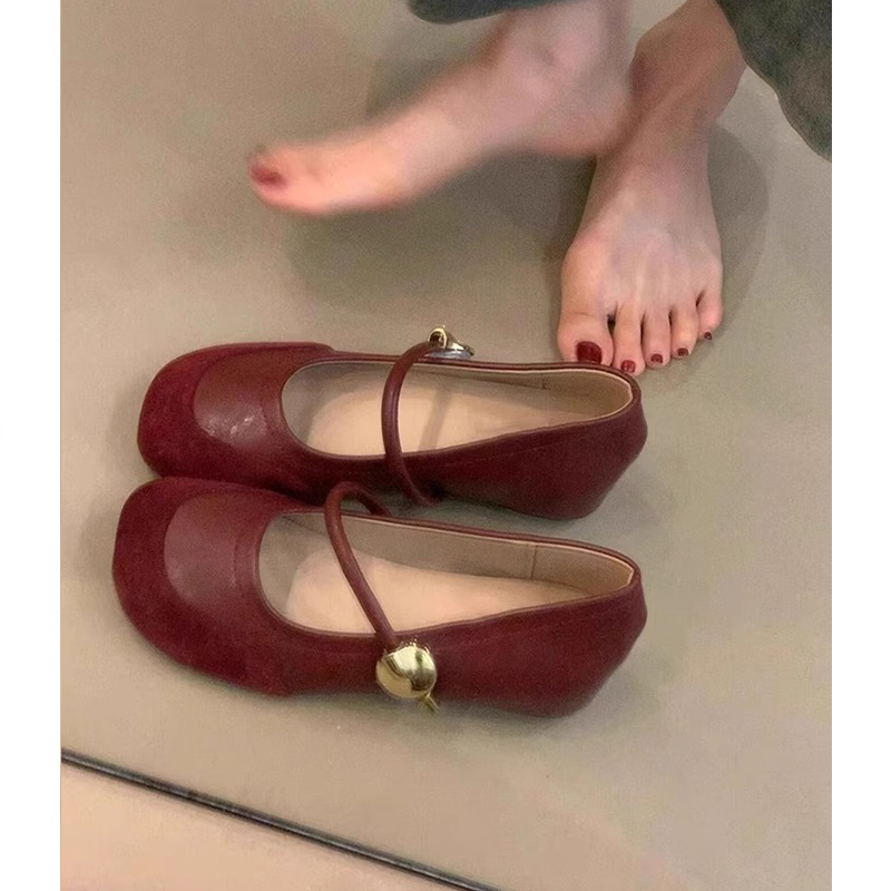 秋季 红色平底鞋 芭蕾法式 浅口婚鞋 达芙妮羊皮单鞋 豆豆鞋 女2025新款