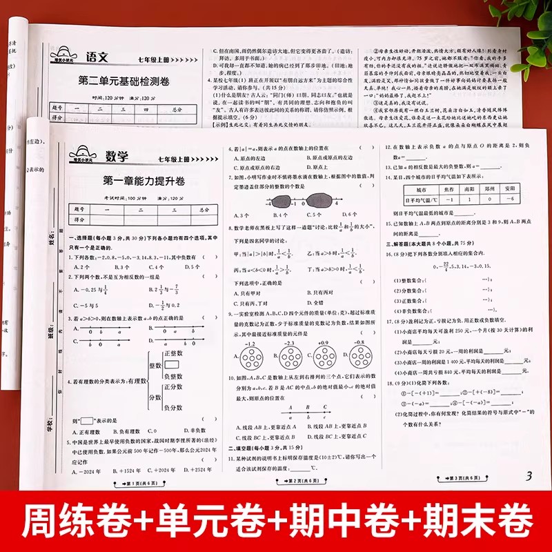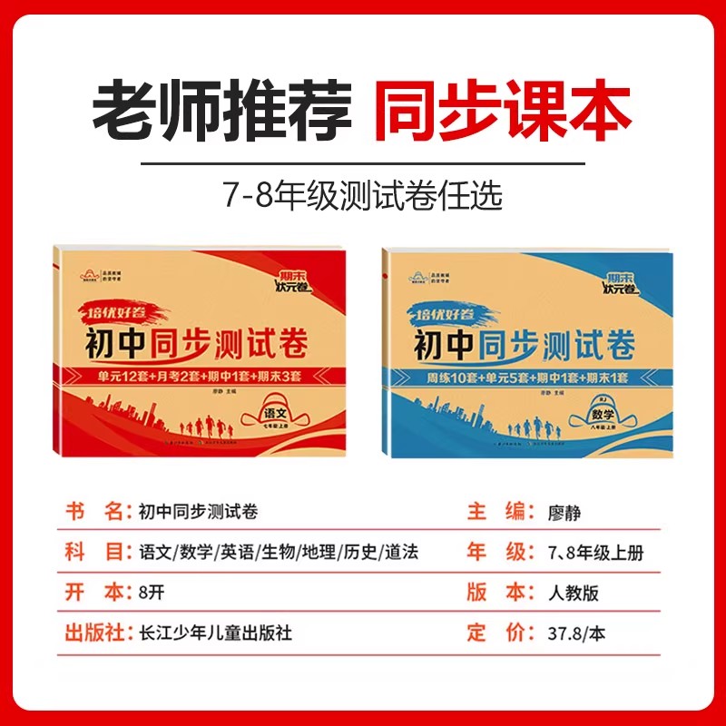 初中七年级八年级上册试卷测试卷全套初一初二上语文数学英语物理政治历史地理生物人教版 小四门同步训练练习册培优语数英知识点