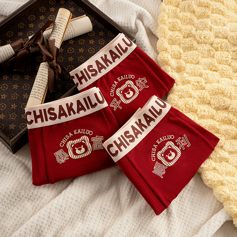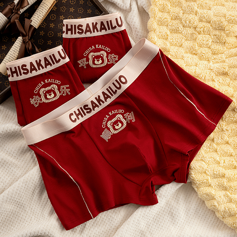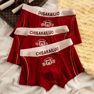 四角新年短裤 本命年男士 纯棉大红色结婚属蛇年男款 男生平角裤 内裤