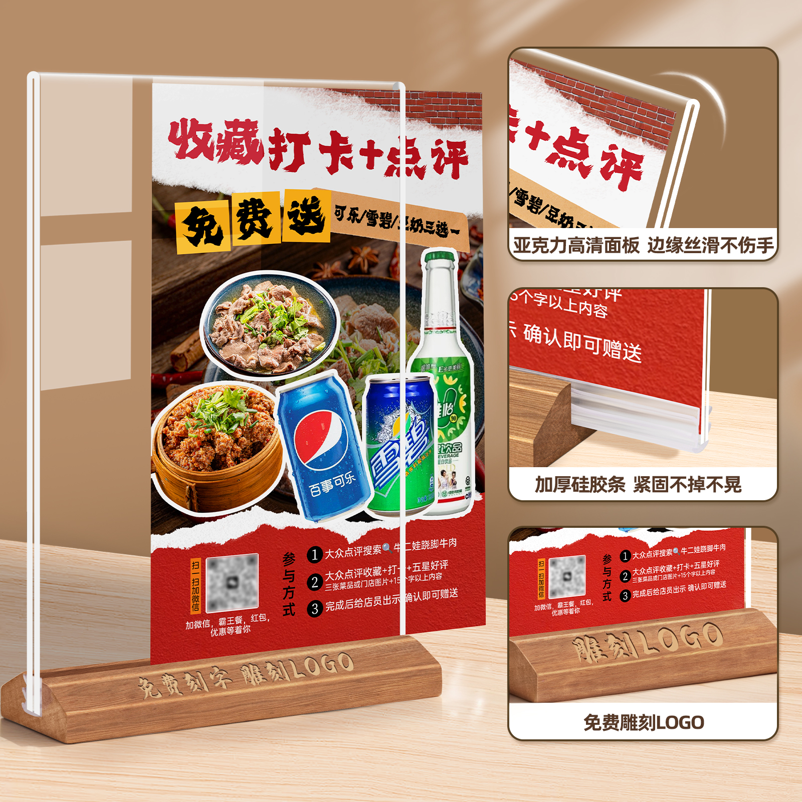 亚克力台卡展示牌立牌木质桌面a4广告牌桌牌价格牌价目表定制台牌立式 收藏打卡奶茶菜单点餐牌摆台展示架板a5