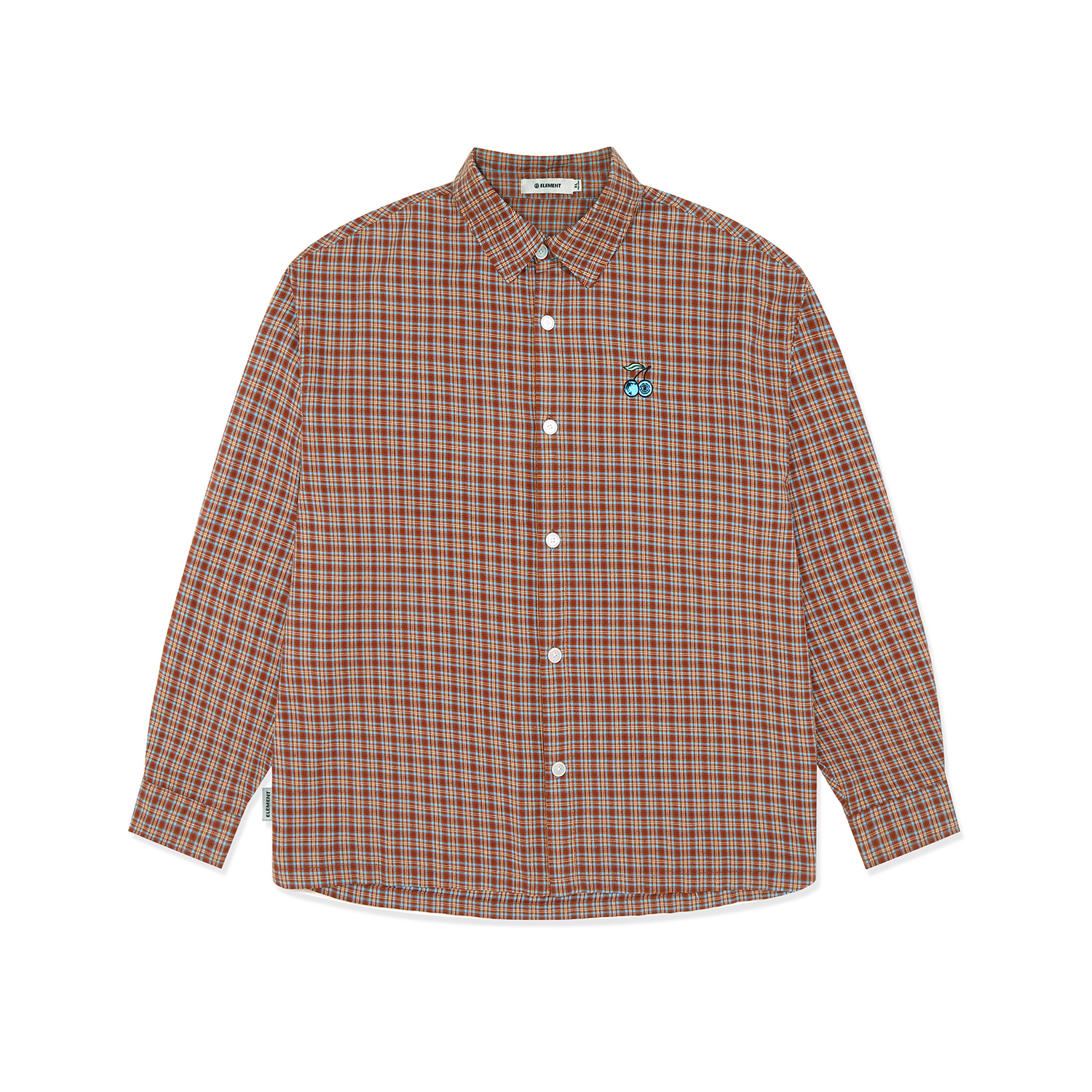 暗红格纹宽松美式 男秋季 刺绣情侣外套女 衬衫 美国ELEMENT滑板长袖