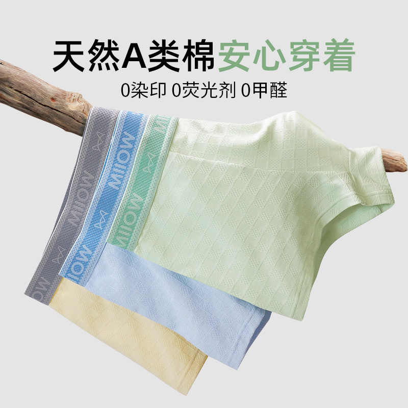 2025新款 男生纯棉全棉抑菌裆四角裤 男式 平角短裤 猫人男士 男款 内裤