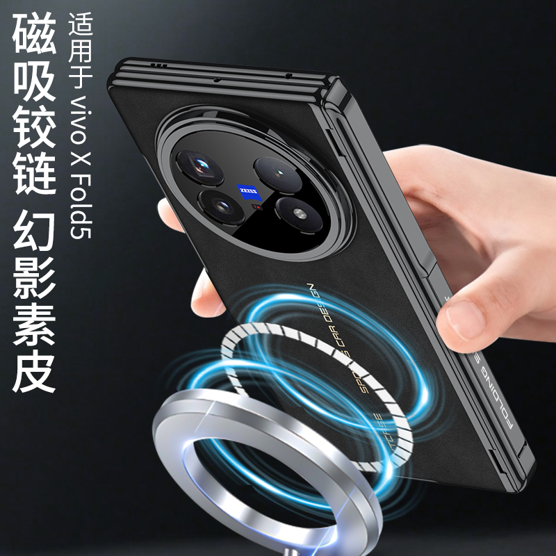 折叠屏全包中轴铰链保护套vivo fold5超薄磁吸真皮支架镜头外壳防摔 xfold5新款 适用vivoxfold5手机壳vivo
