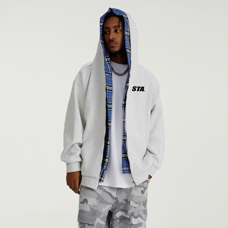 宽松休闲潮牌花灰色百搭外套衫 STA重磅新款 拉链连帽卫衣情侣秋季