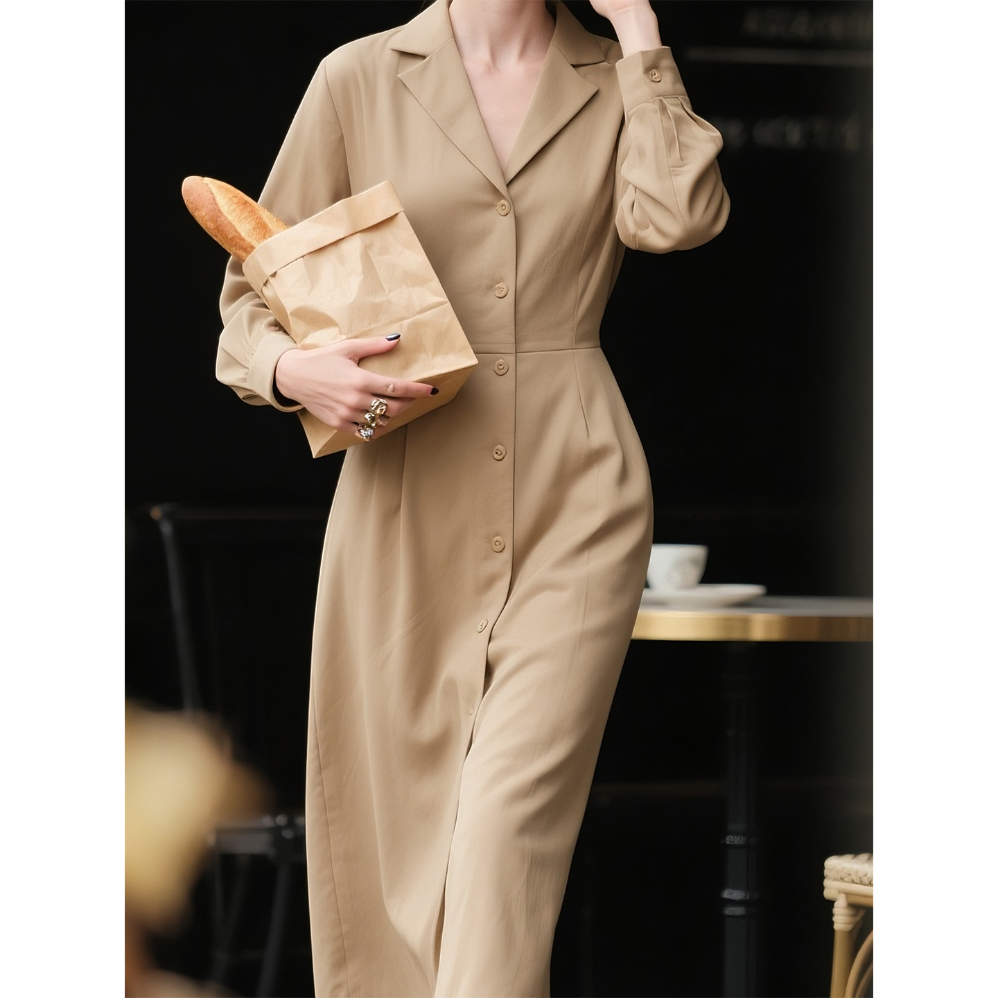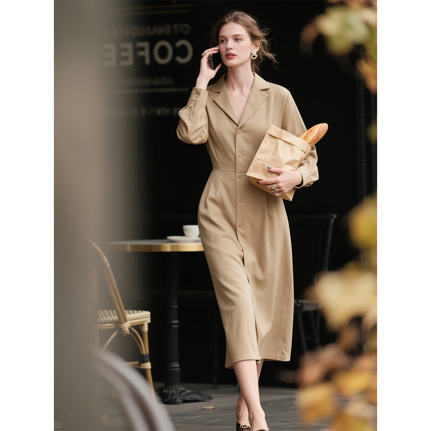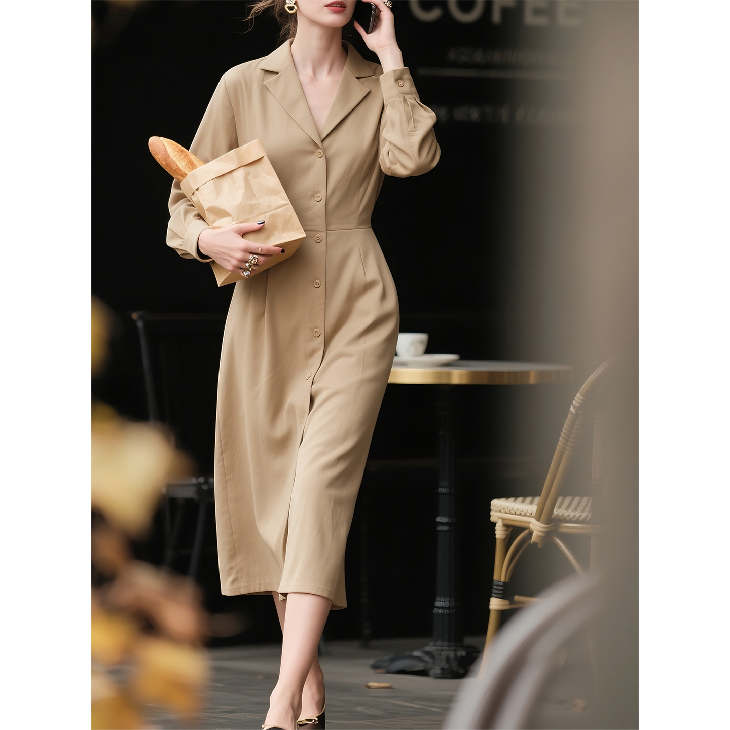 粉蓝衣橱2025秋冬新款 BBLLUUEE 雅致通勤收腰连衣裙 简约大气