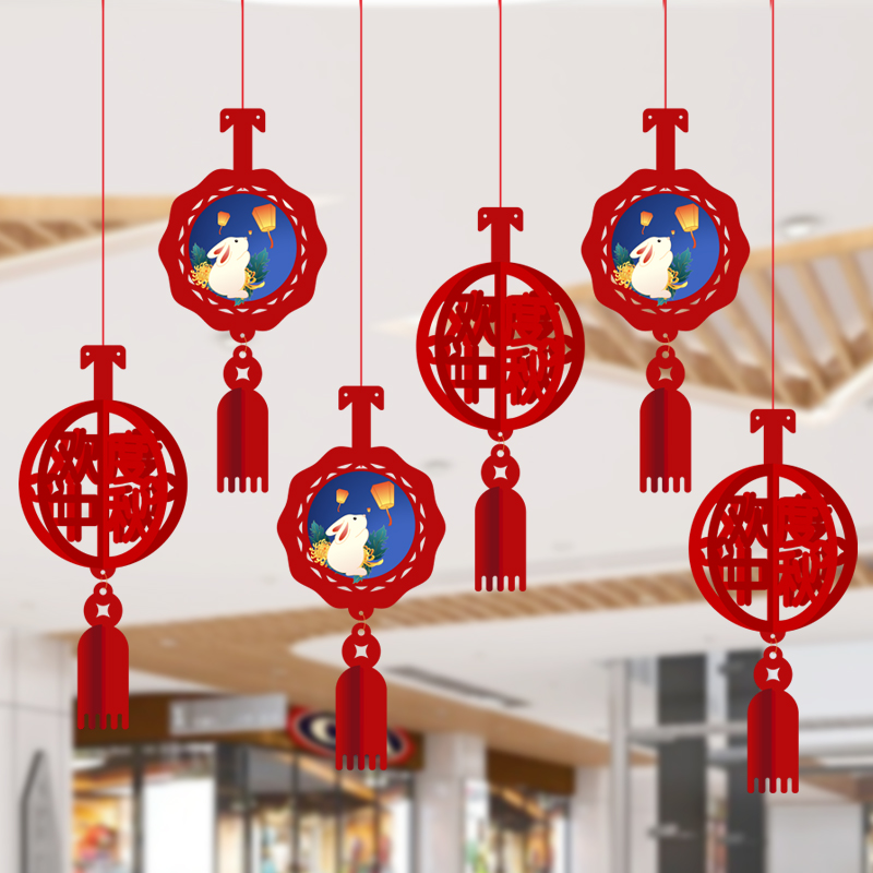 国庆中秋节场景布置挂件商场店铺节日活动氛围背景墙开业灯笼吊饰
