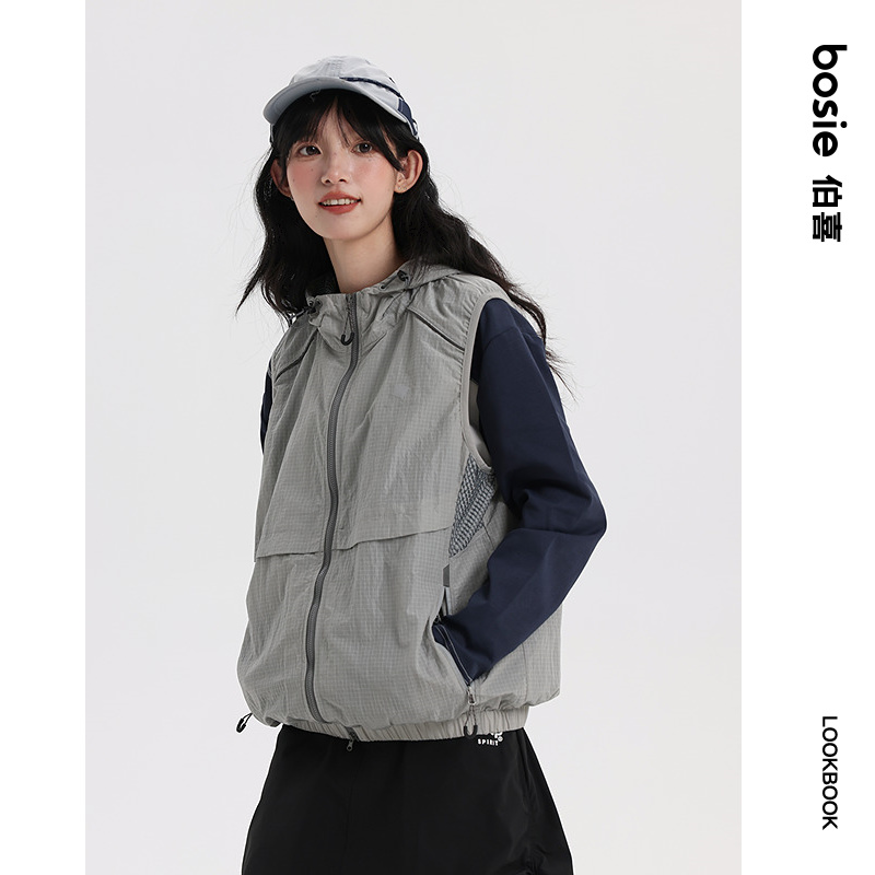 YAYA鸭鸭2025女士休闲风秋冬无袖 常规休闲纯色连帽马甲羽绒服 韩版