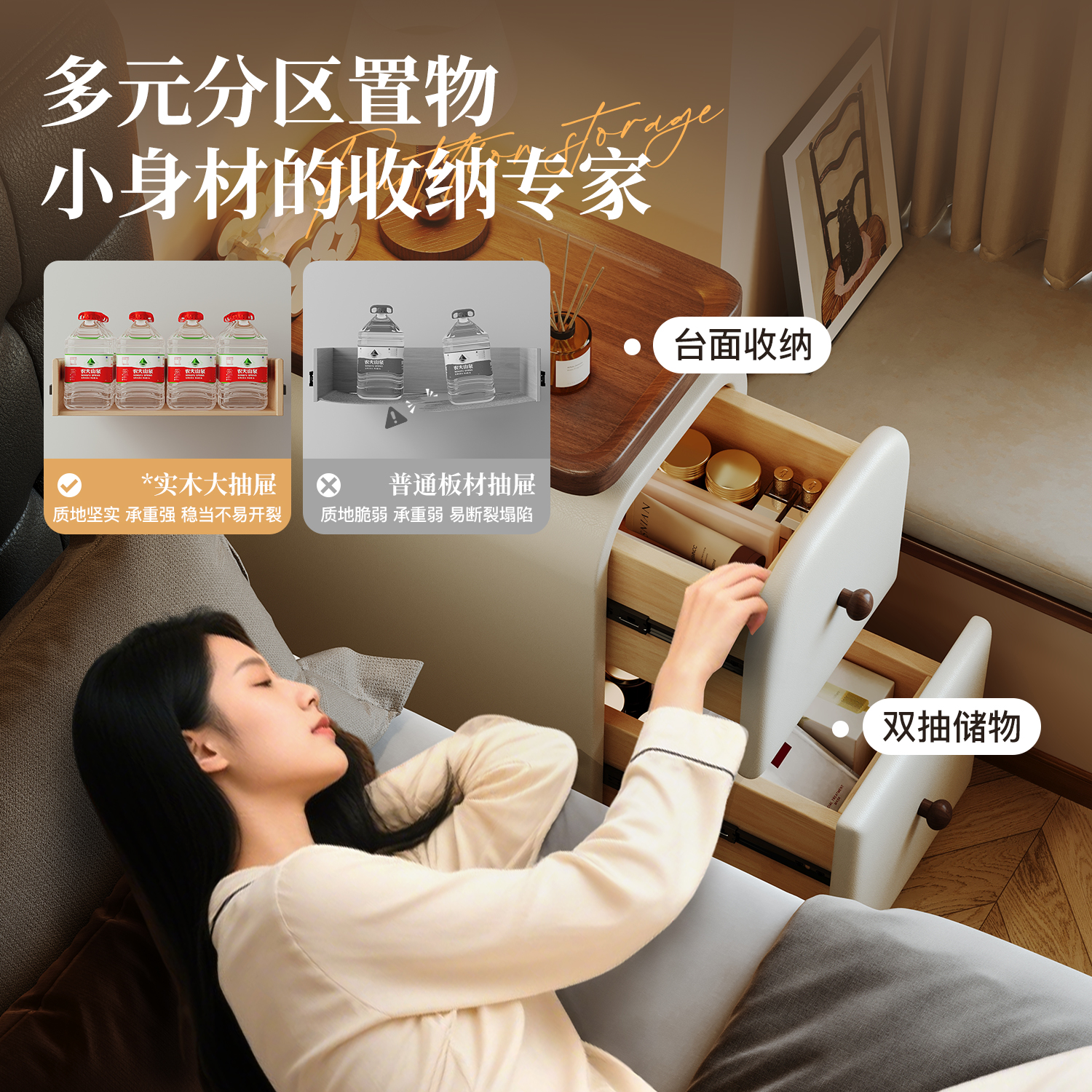 家用抽屉式 床头柜 收纳柜零食夹缝置物柜储物柜子多层客厅卧室日式