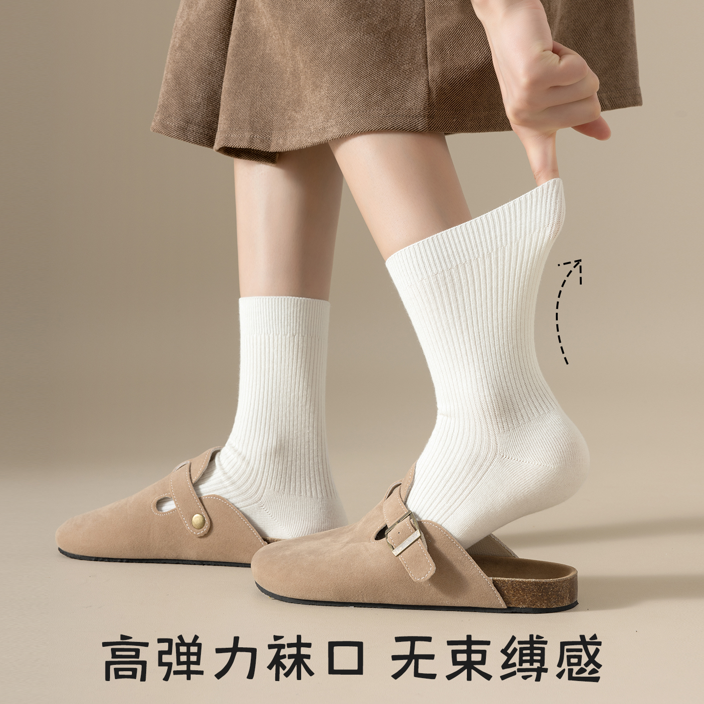 爆款 长筒长袜2025新款 中筒袜纯棉无骨搭勃肯鞋 堆堆袜子女春秋冬季