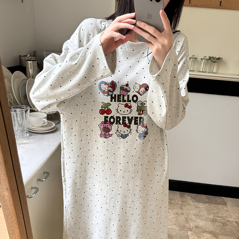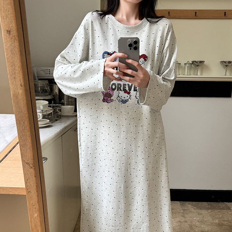 浴袍秋冬家居服 睡衣休闲慵懒风睡裙大码 轩靓睡袍女春秋季 纯棉长袖