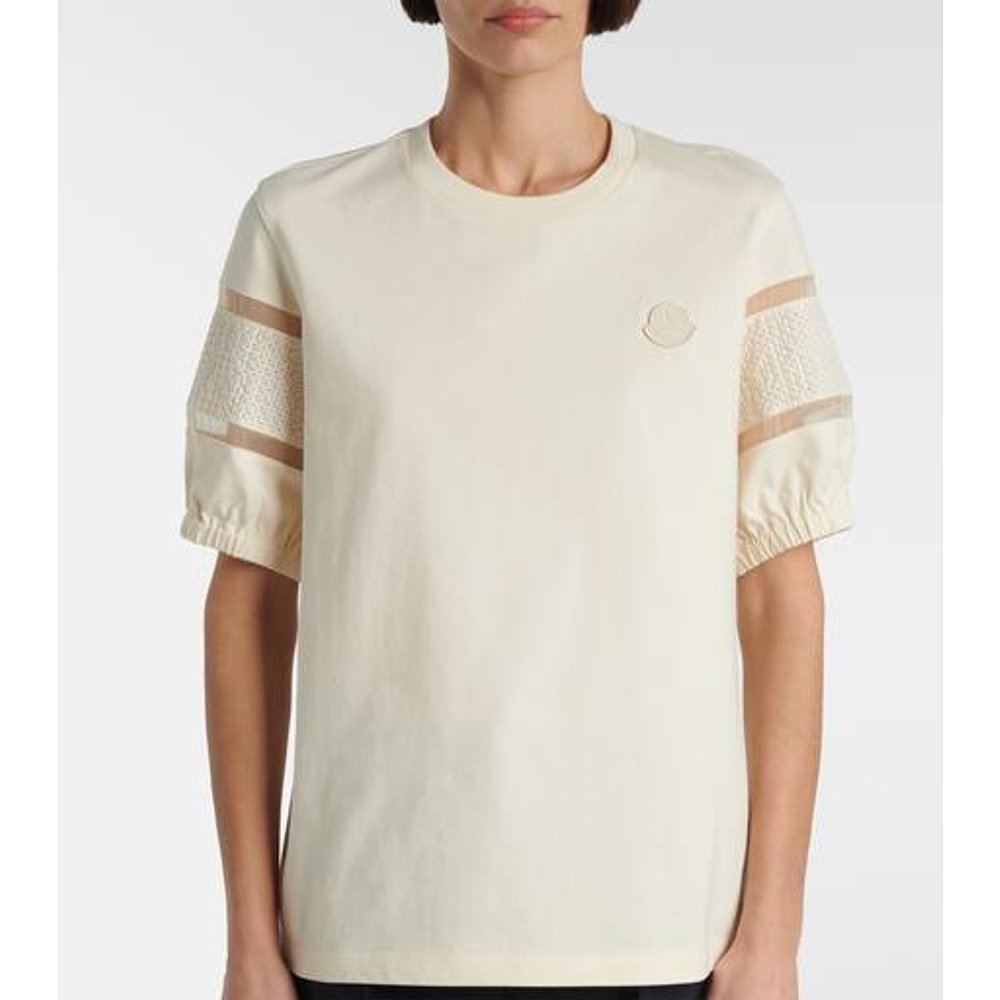蕾丝边棉质T恤 1h可退 女士 盟可睐 white白色 香港直邮Moncler