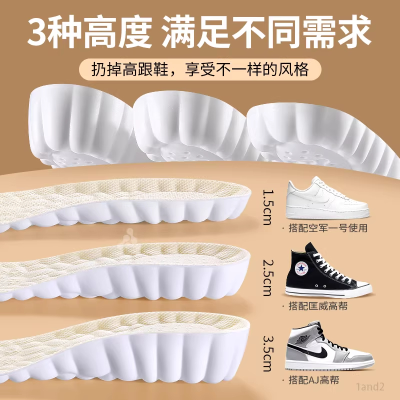防臭内增高鞋 士软底舒适吸汗运动气垫减震隐形久站不累脚 垫男女款