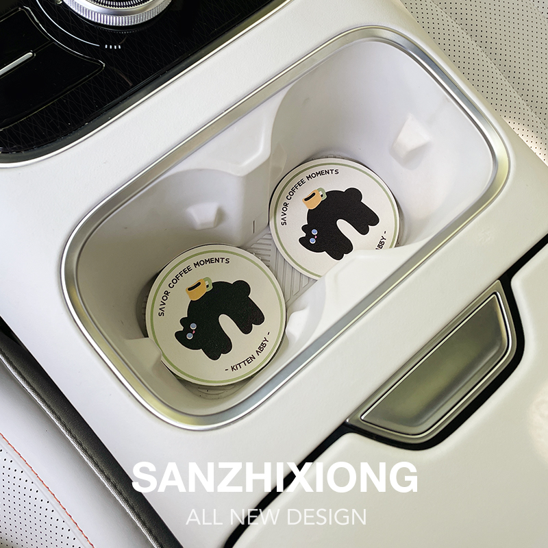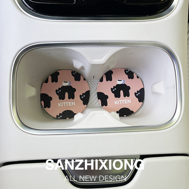 可爱猫咪汽车防滑垫创意车载水杯垫车内装 饰防滑垫车内饰储物槽垫