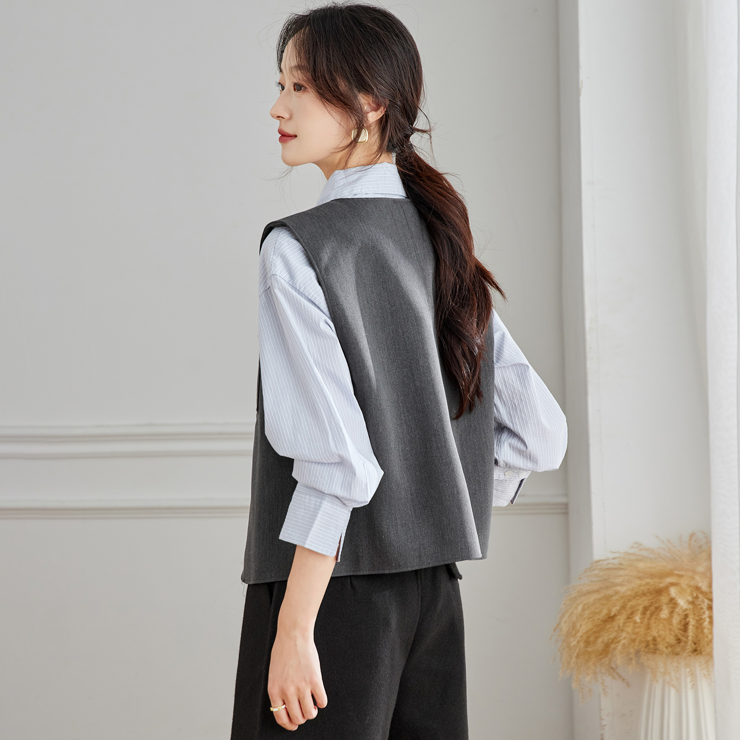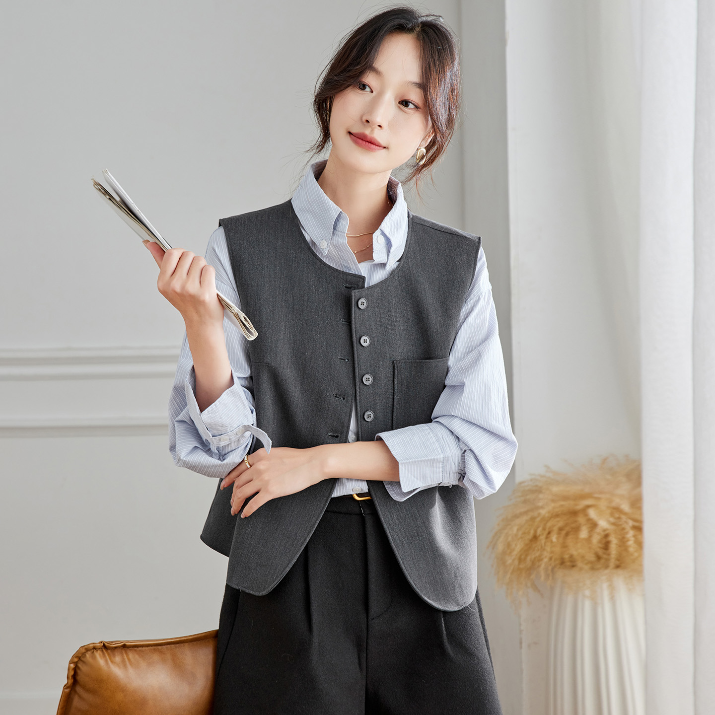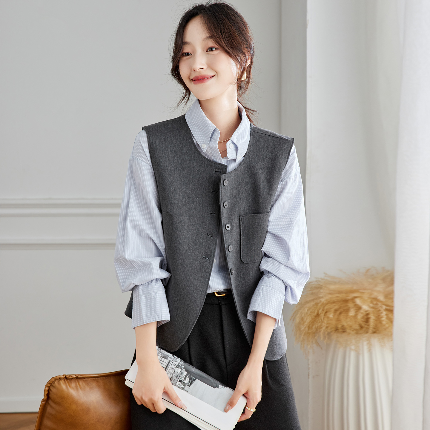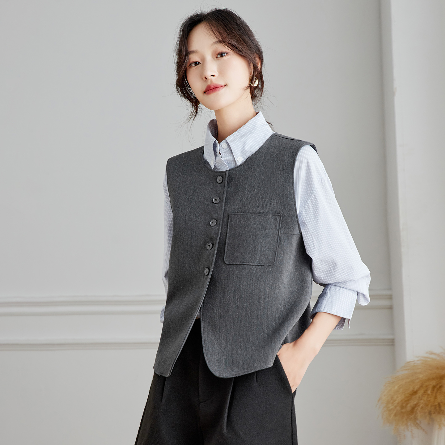 外套上衣 减龄百搭无袖 棕色宽松复古圆领pu皮衣马甲背心女秋季 新款