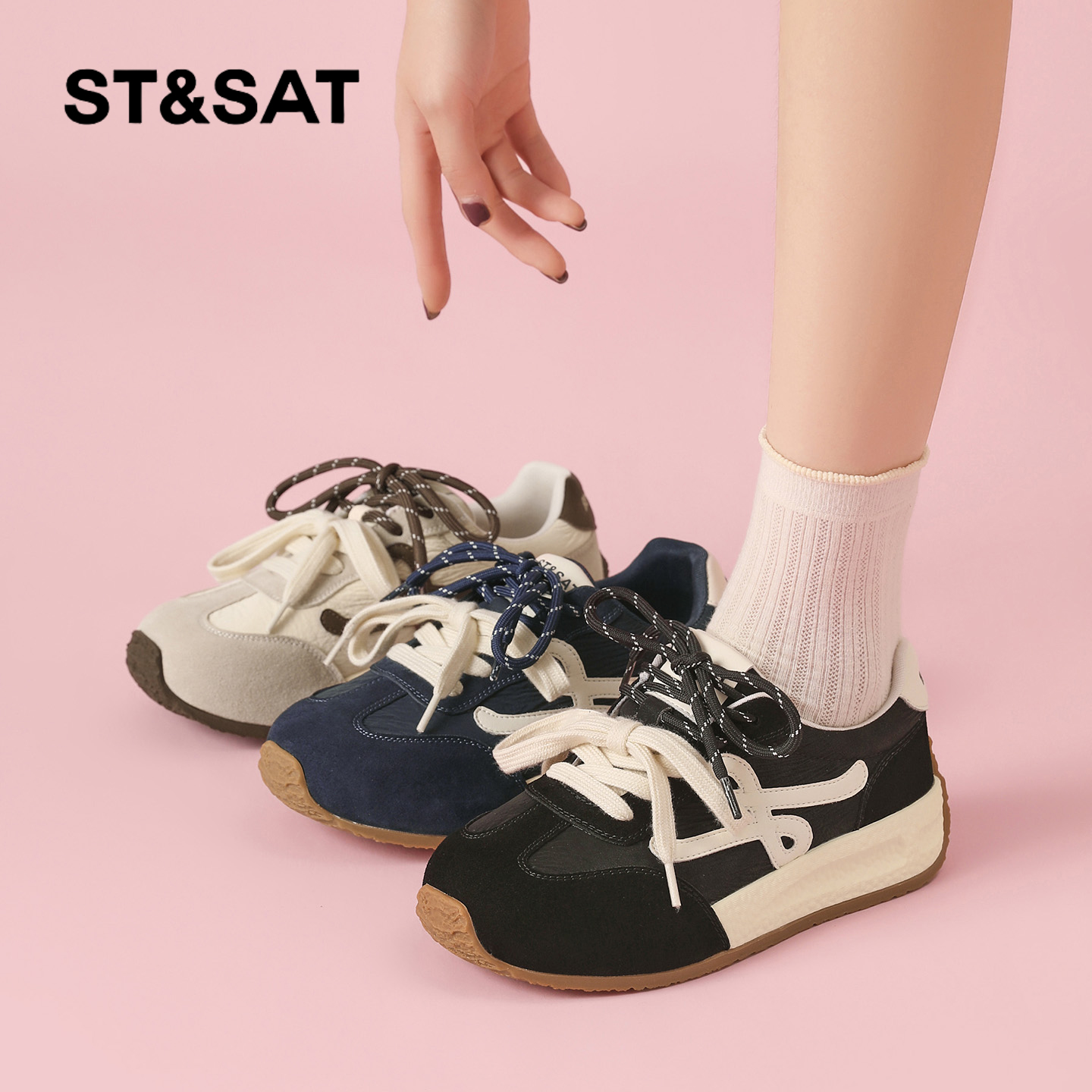 新款 2025秋季 女鞋 透气复古小白鞋 皮面德训鞋 运动休闲浅口板鞋 女款