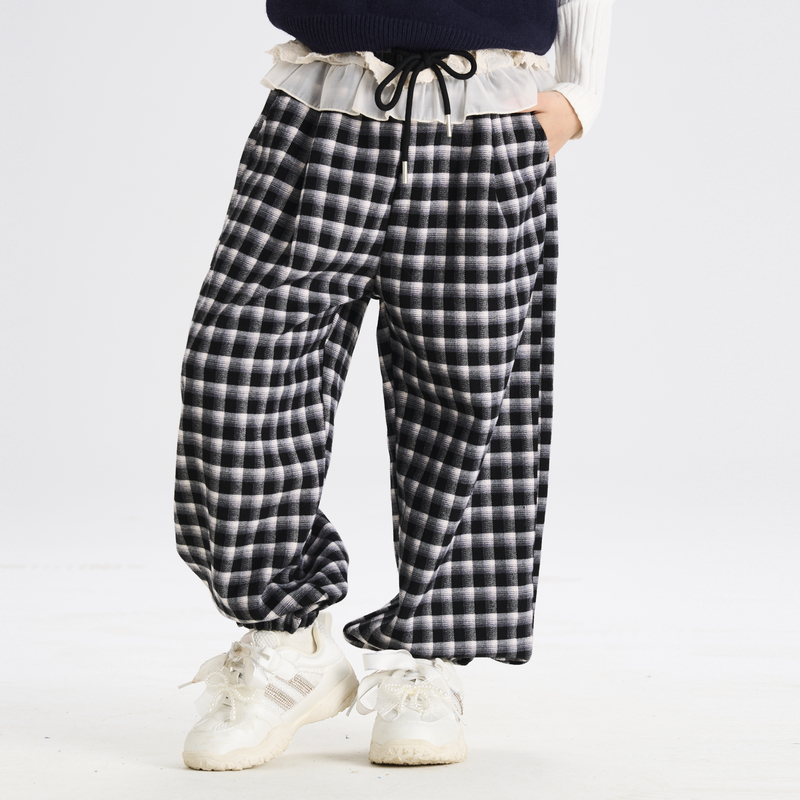加绒街舞穿搭褶皱宽松休闲长裤 女秋冬季 子 灰色运动卫裤 自然涩美式