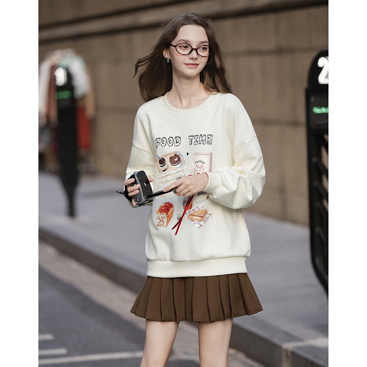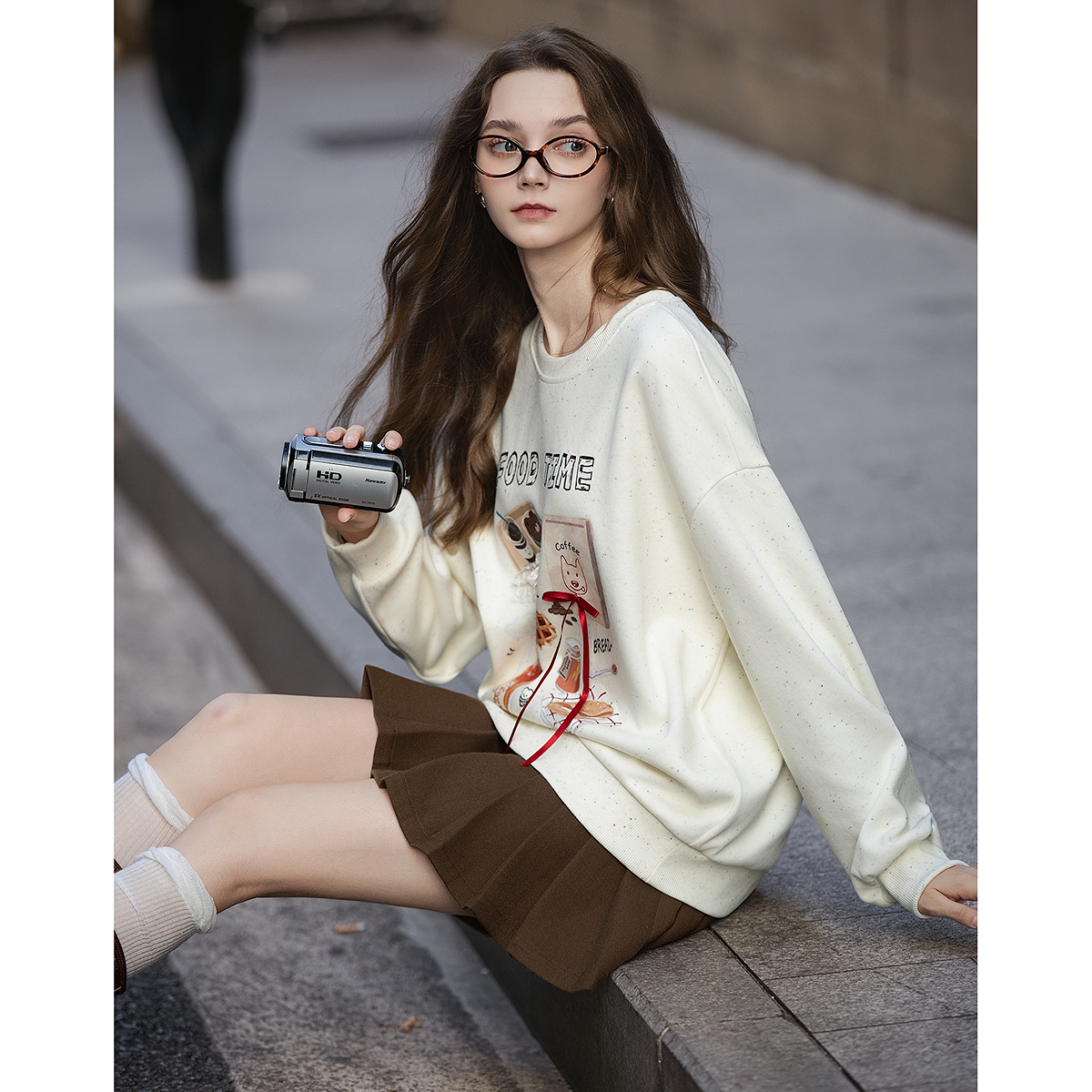 女卫衣初秋女装 唐狮2025年秋冬款 高级感印花圆领卫衣秋 双11预售