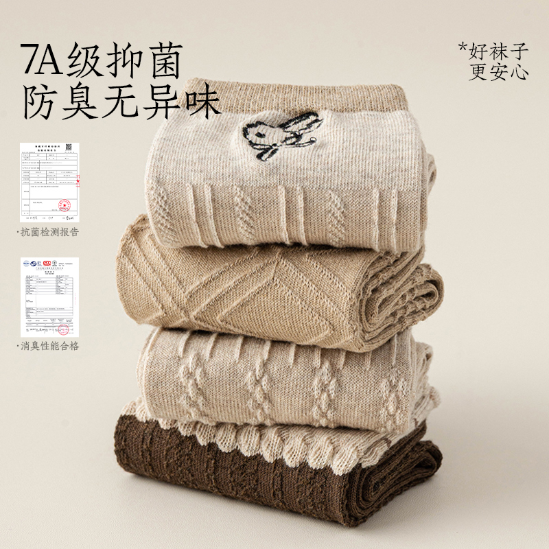 袜子女纯棉秋冬季 抗菌防臭脚秋冬美拉德刺绣中筒袜女士 2025新爆款