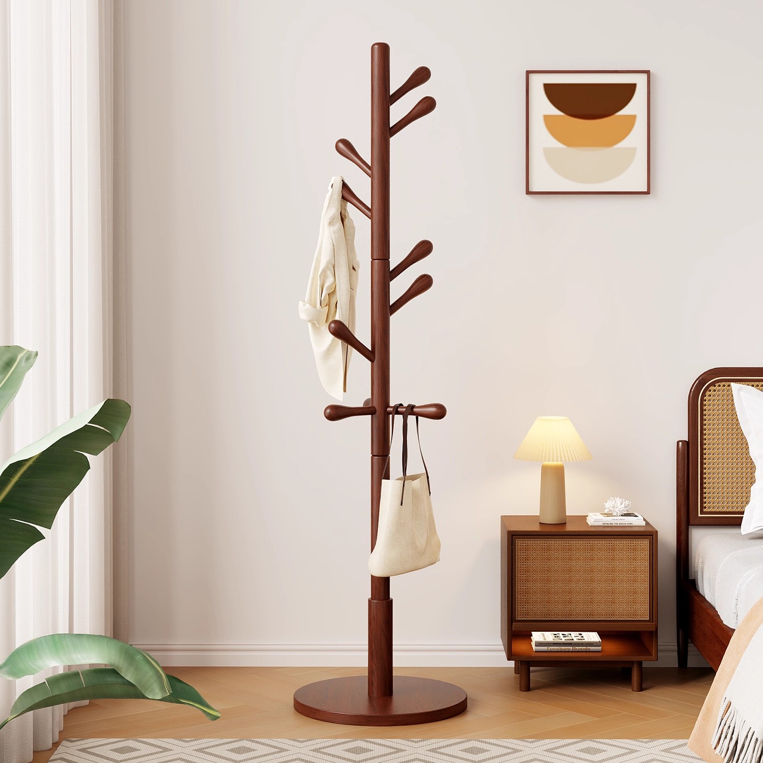 实木衣架落地衣帽架卧室家用挂衣架简易立式 榉木挂衣杆室内挂包架