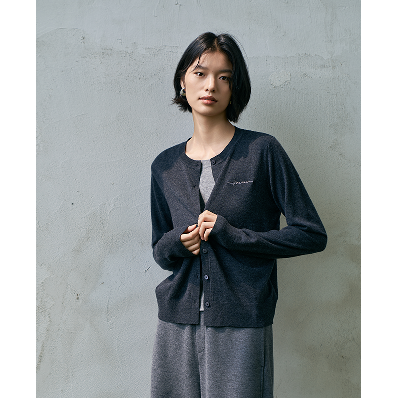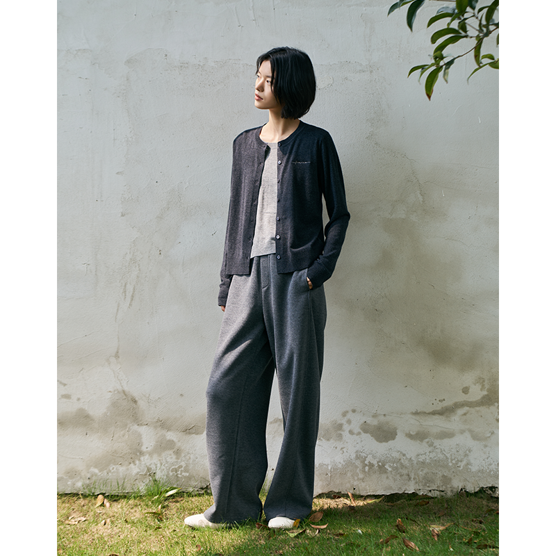 女宽松显瘦针织衫 撞色假两件美丽诺羊毛织套头衫 新品 OTT2025冬季
