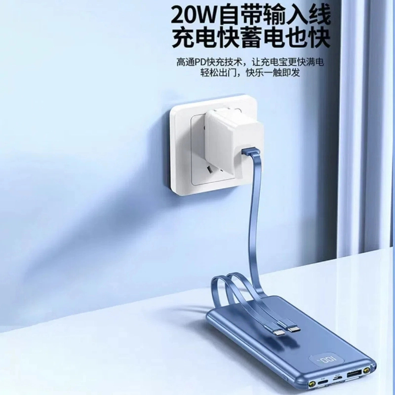 超级快充电宝超大容量20000毫安超薄自带线闪充户外移动电源适用于苹果vivoppo华为旗舰 正品 新国标3C认证