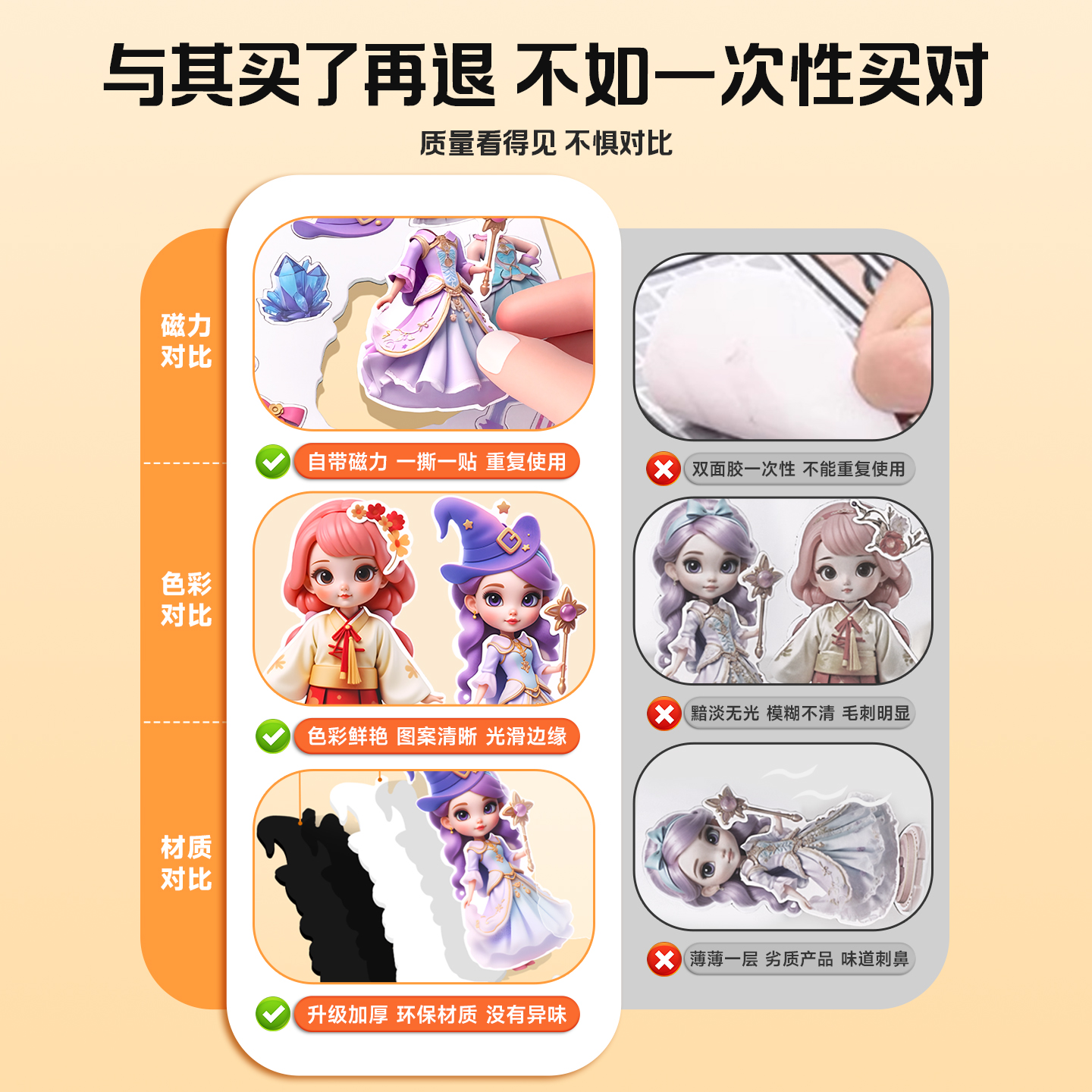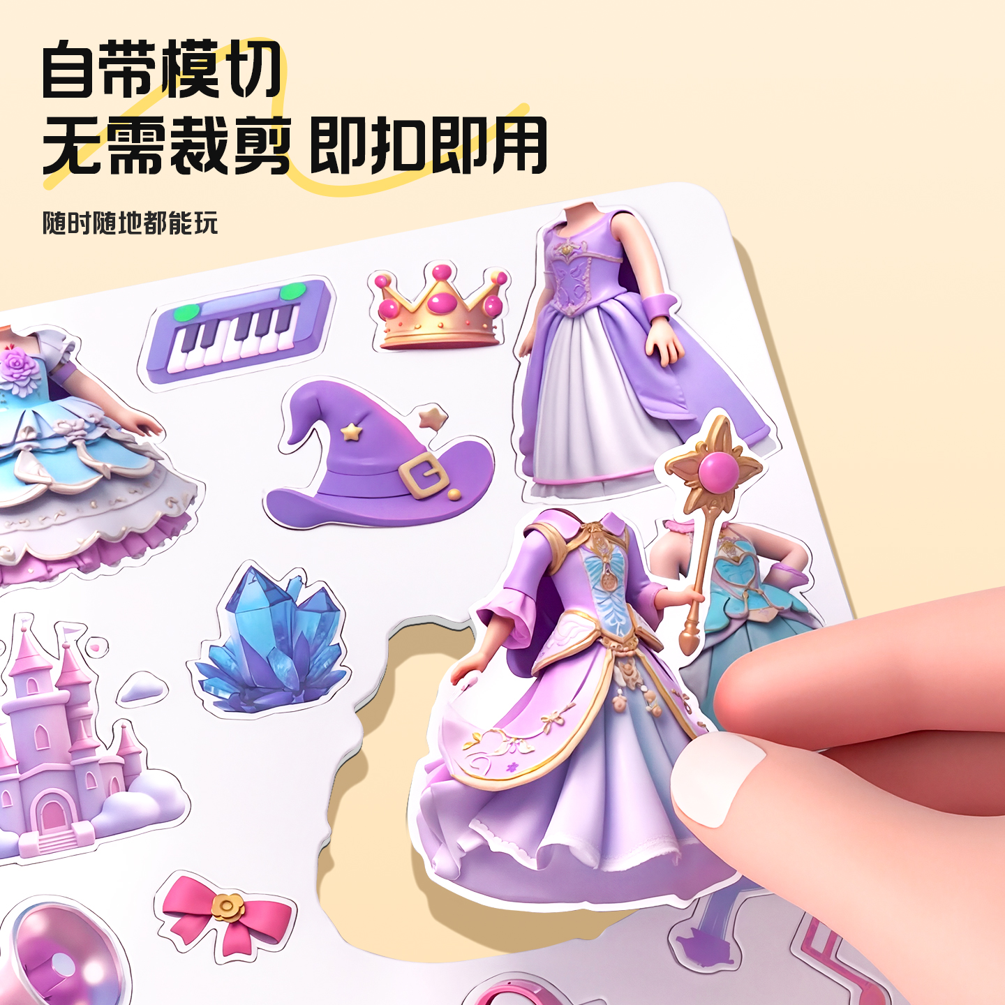 化妆贴纸公主换装 饰 贴纸本美妆贴画手账素材可爱卡通少女心穿搭手册合集女孩儿童益智玩具卡通手帐贴纸美甲装