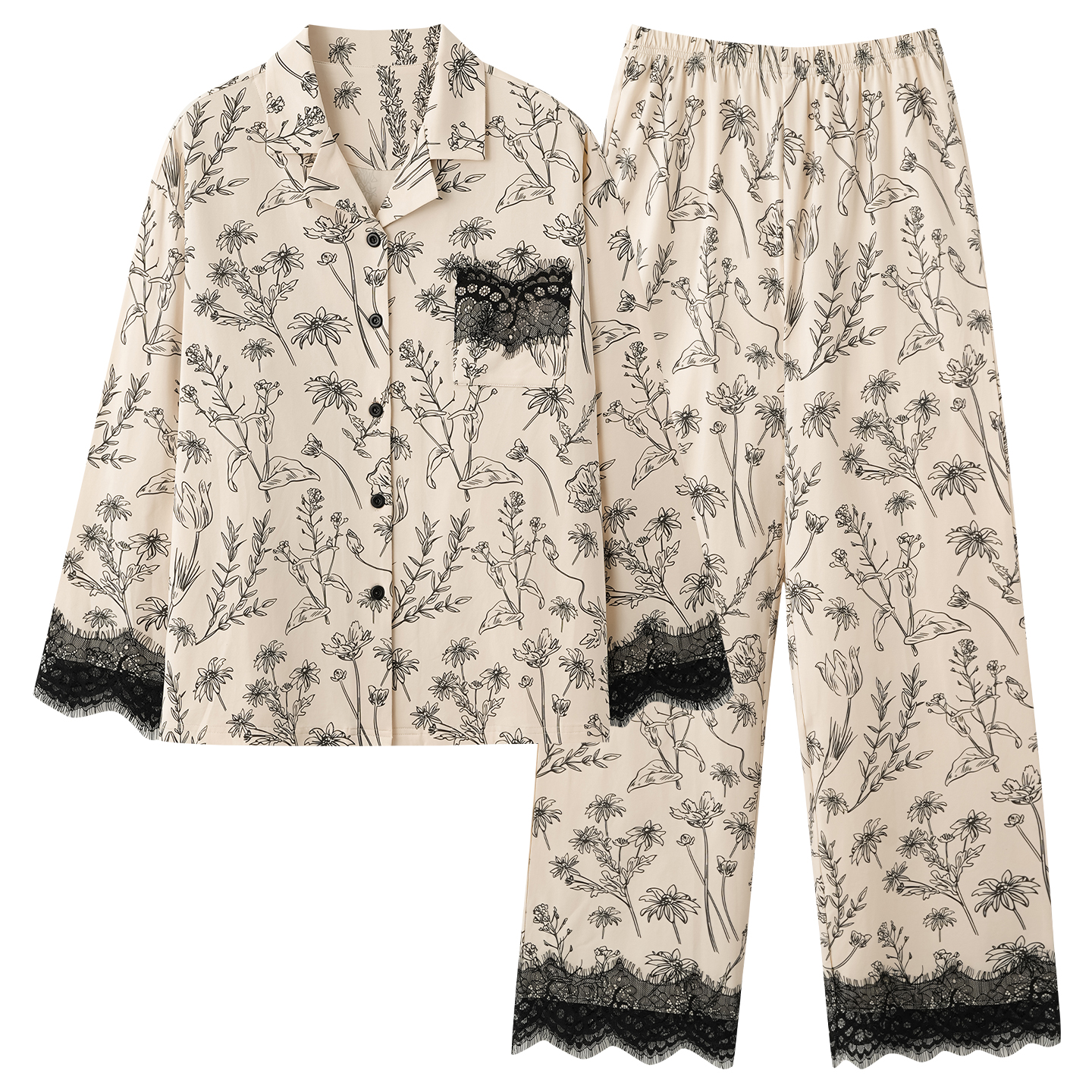 宽松加大码 都市丽人纯棉睡衣女款 套装 长袖 家居服可外穿 夏2025新款