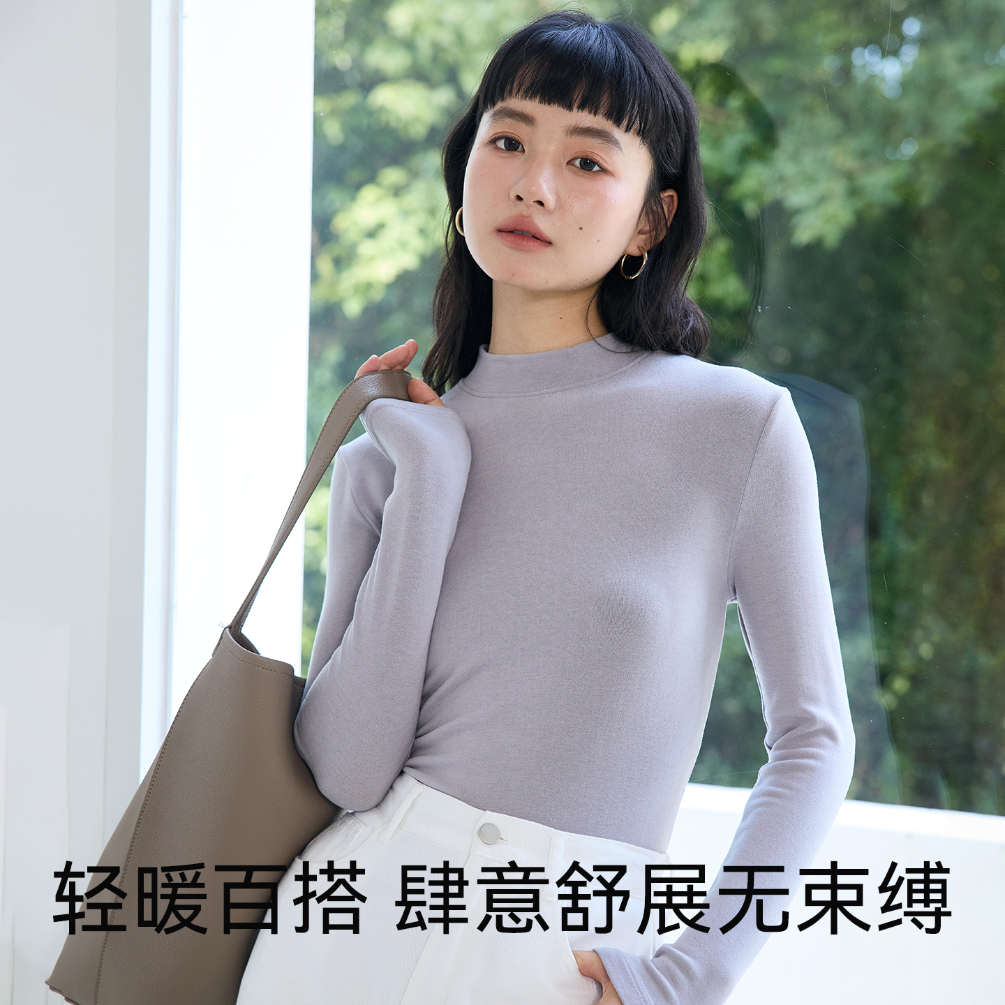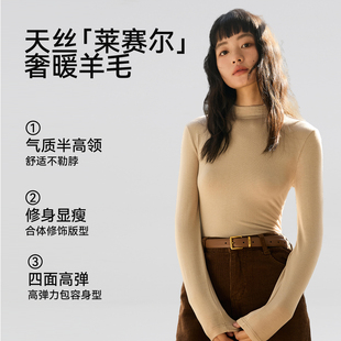 显瘦T恤外穿长袖 内搭羊毛半高领修身 上衣 女秋季 莱赛尔天丝打底衫